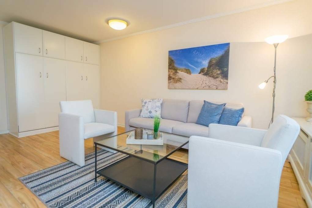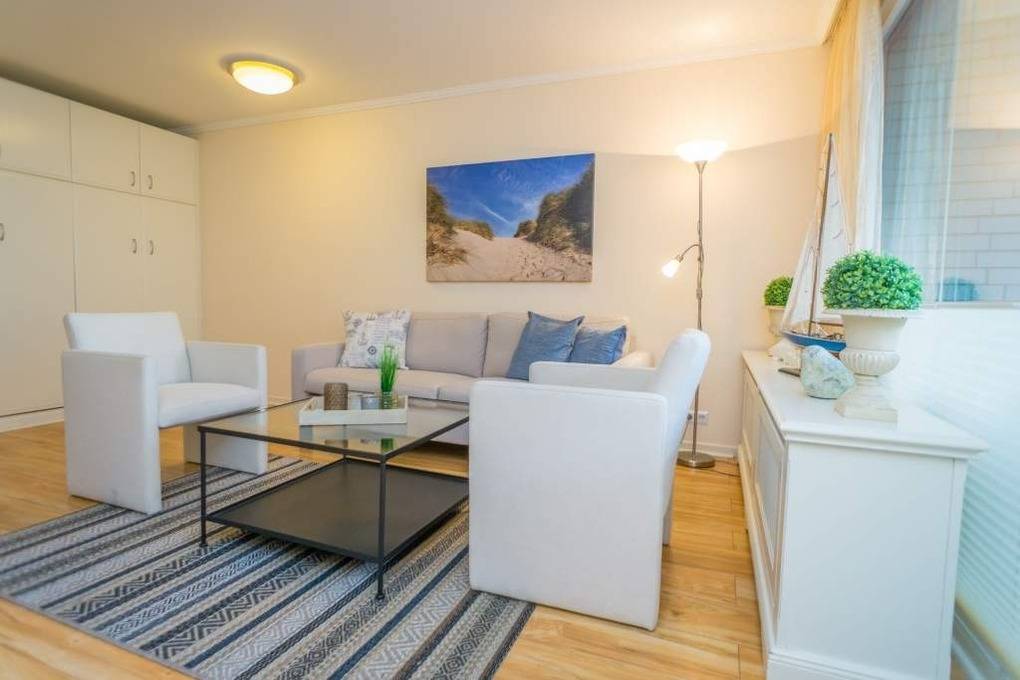 Geschmackvoll eingerichtete, komplett mit Laminat ausgelegte 2-Zimmer-Nichtraucher-Ferienwohnung in der 1. Etage zur Südseite mit Südbalkon (Mit Balkonmöbeln und Auflagen) für max. 4 Personen.