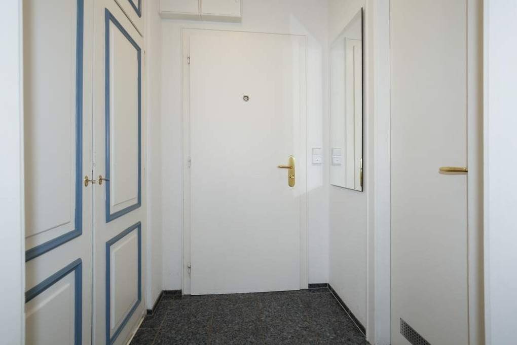 Vom Vorflur mit Garderobenschrank gelangt man in das Wohnzimmer (mit Austritt zum Balkon), in das Schlafzimmer und in das Duschbad/WC.