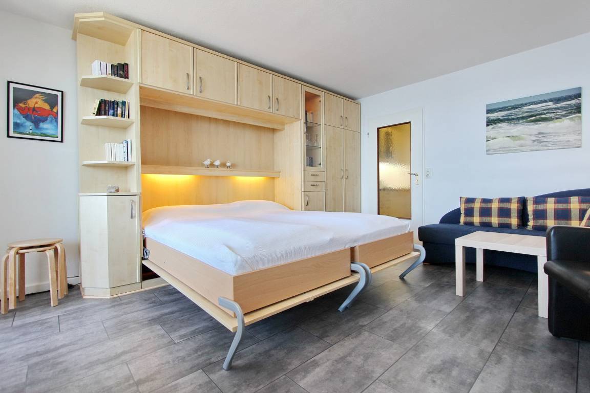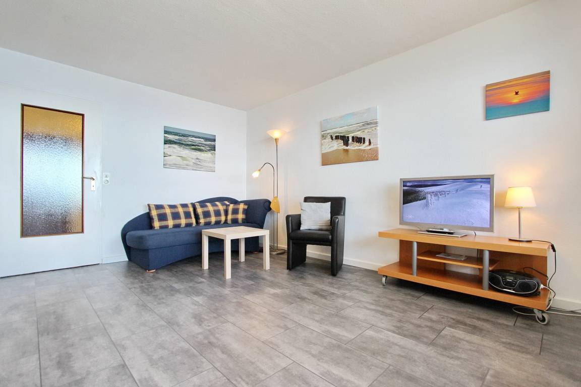 Gepflegte 1-Zimmer-Wohnung im Herzen von Westerland - sie befindet sich in der 12. Etage im Kurzentrum von Westerland mit herrlichem Blick auf die Nordsee. Auf dem vorgelagertem West-Balkon können Sie ungehindert den Sonnenuntergang genießen. Das Schwimmbad Sylter Welle, der Hauptstrand und die beiden Fußgängerzonen befinden sich in unmittelbarer Nähe. Der kombinierte Wohn-/Schlafraum verfügt über eine Chaiselongue mit einem Ledersessel und einem Essplatz mit 2 Stühlen. In der, im Vorflur befindlichen, Küche finden Sie eine Geschirrspülmaschine, ein Ceran-Kochfeld mit 2 Platten, eine Mikrowelle und ein Kühlschrank. Helles Duschbad/WC mit Handtuchheizkörper. Nichtraucherwohnung. Haustiere nicht gestattet.[nbsp] Ein Hotspot im Haus ermöglicht Ihnen einen kabellosen und kostenfreien Zugang zum Internet (WEG Haus Metropol - Passwortfrei - ohne Gewähr). Wohnungsgröße ca. 34 m².