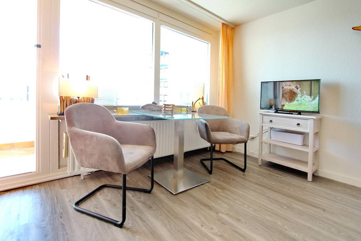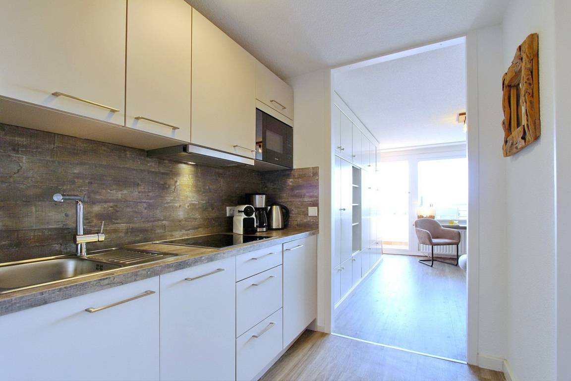 Diese Einzimmerwohlfühloase befindet sich im Haus Metropol in der 4. Etage und hat einen Balkon zur Ostseite. Der kombinierte Wohn-Schlafraum verfügt über ein Doppelschrankbett, einen Essplatz am Fenster mit 2 Stühlen, sowie eine Couch. In der Wohnung wurde hochwertiger Designfussboden verlegt. Das Badezimmer hat eine Dusche mit Duschhocker, beleuchtetem Schminkspiegel, einen Fön und einen mobilen Haltegriff. Um sich selbst zu verpflegen gibt es im Flur eine moderne Einbauküche mit Cerankochfeld, Geschirrspüler und Mikrowelle, sowie eine zusätzliche Nespressomaschine, einen Eierkocher und einen Smoothiemaker. Zur technischen Ausstattung dieser Wohnung gehört: ein Flachbildfernseher von Panasonic und ein Bluetoothradio mit CD Spieler. Ein freies WLAN Netzwerk (WEG Haus Metropol - Passwortfrei - ohne Gewähr) steht ihnen kostenfrei zur Verfügung. Wohnungsgröße: ca. 30 m².