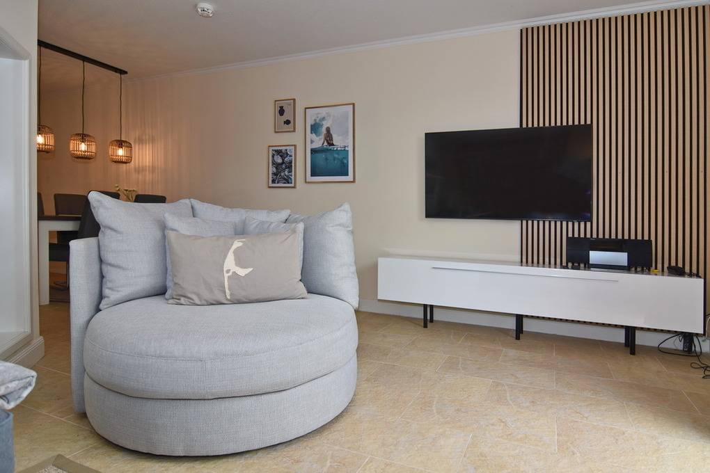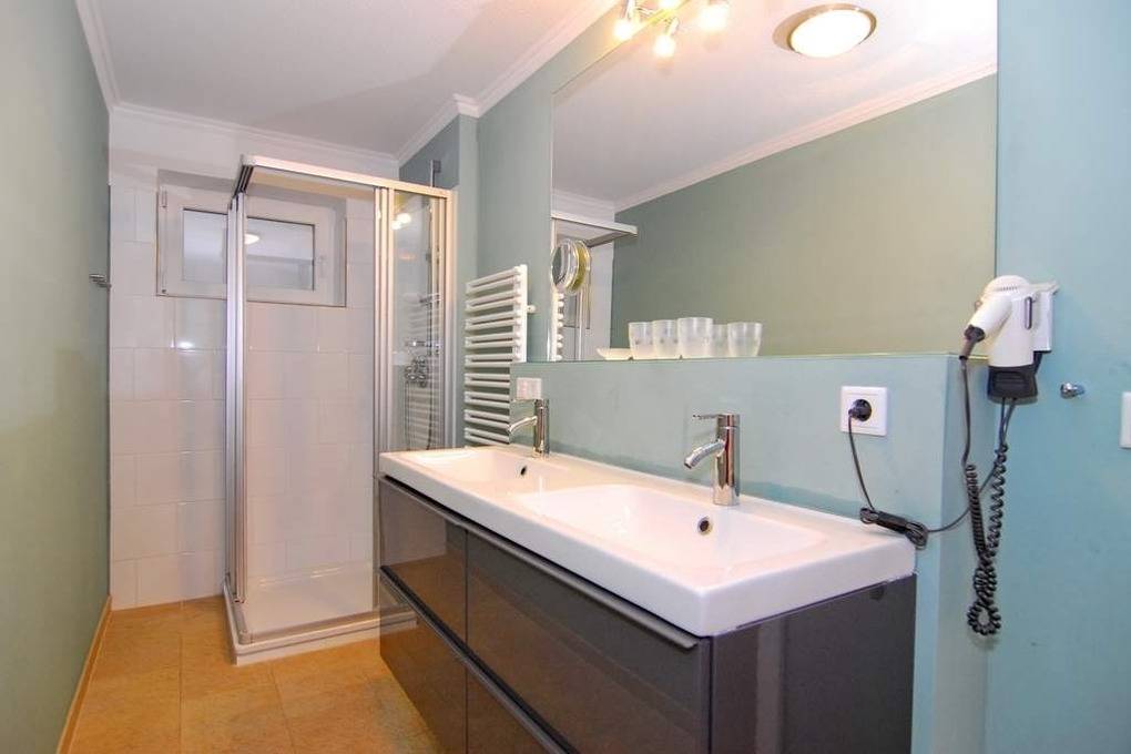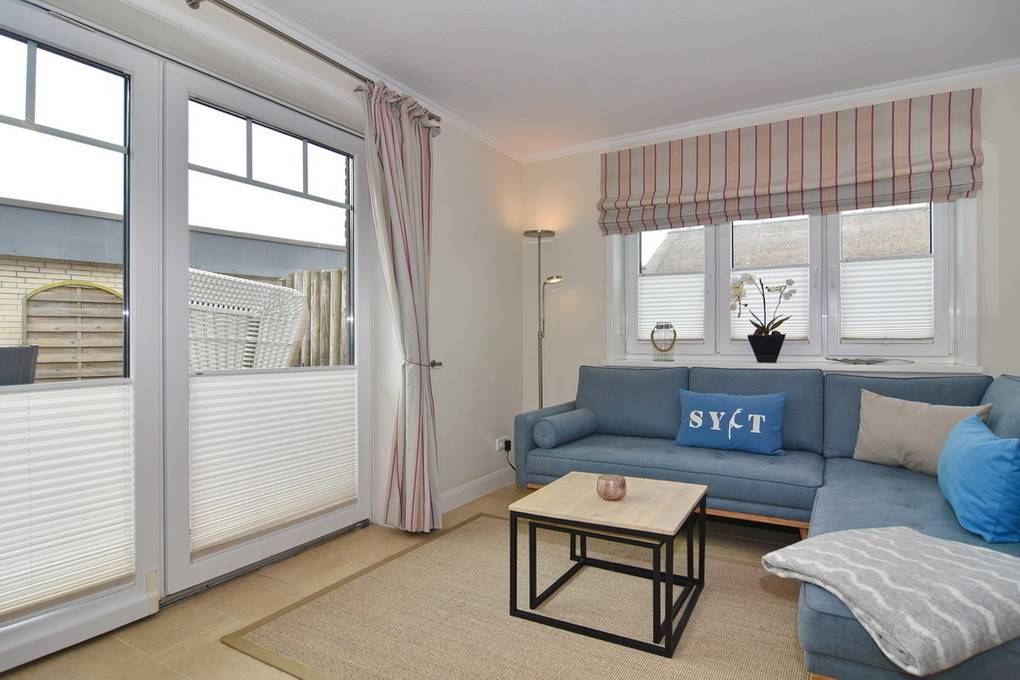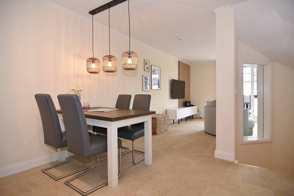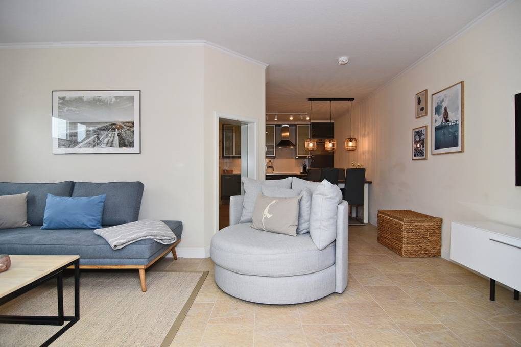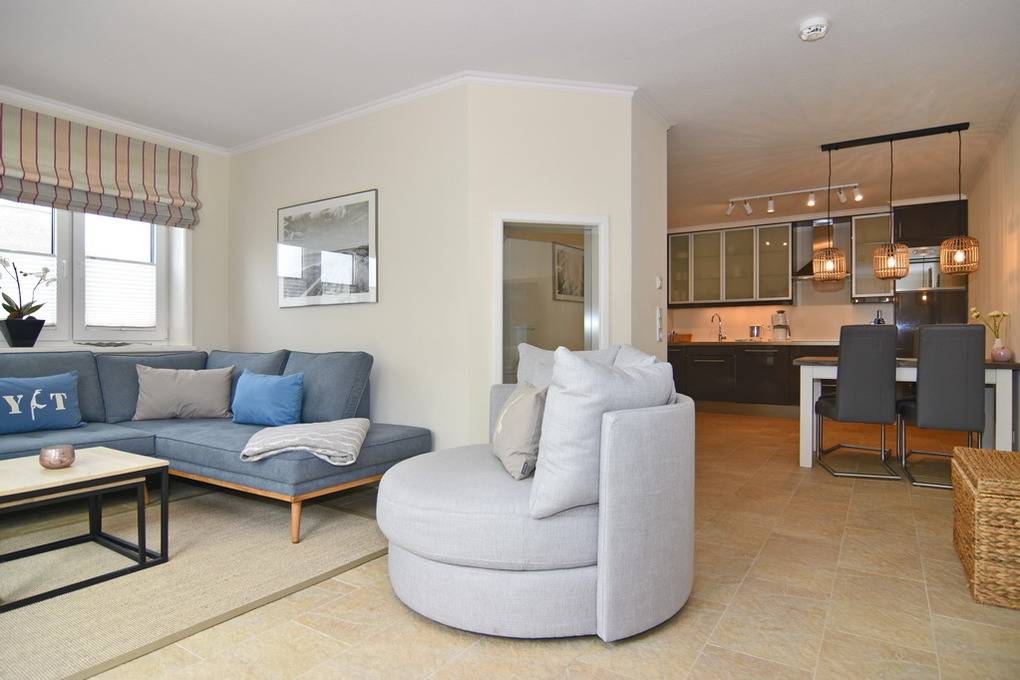 Die Ferienwohnung „Ilse-Marie 3" ist eine großzügige und komfortable 3-Zimmer-Wohnung mit einer Wohnfläche von ca. 86 m². Im Erdgeschoss befinden sich ein großes, helles Wohnzimmer mit einer gemütlichen Sitzecke sowie einem Essplatz für bis zu vier Personen. Die offen gestaltete Küche ist modern ausgestattet und verfügt über einen Geschirrspüler sowie eine Mikrowelle. Zudem steht Ihnen im Erdgeschoss ein Gäste-WC zur Verfügung. Auf der nach Westen ausgerichteten Terrasse steht Ihnen von April-Oktober ein Strandkorb für entspannte Stunden zur Verfügung. Im Untergeschoss befinden sich zwei Schlafzimmer, jeweils ausgestattet mit einem Box-Spring-Doppelbett, Kleiderschrank und Flat-Screen-Fernseher sowie das Duschbad/Wc.