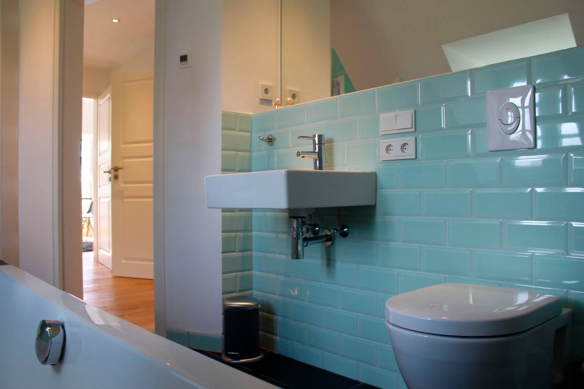 Das Luxusbad verfügt über eine grosse Badewanne und eine extra Raindance Dusche. Sie haben Zugang zum Garten und einen Parkplatz auf dem Grundstück.