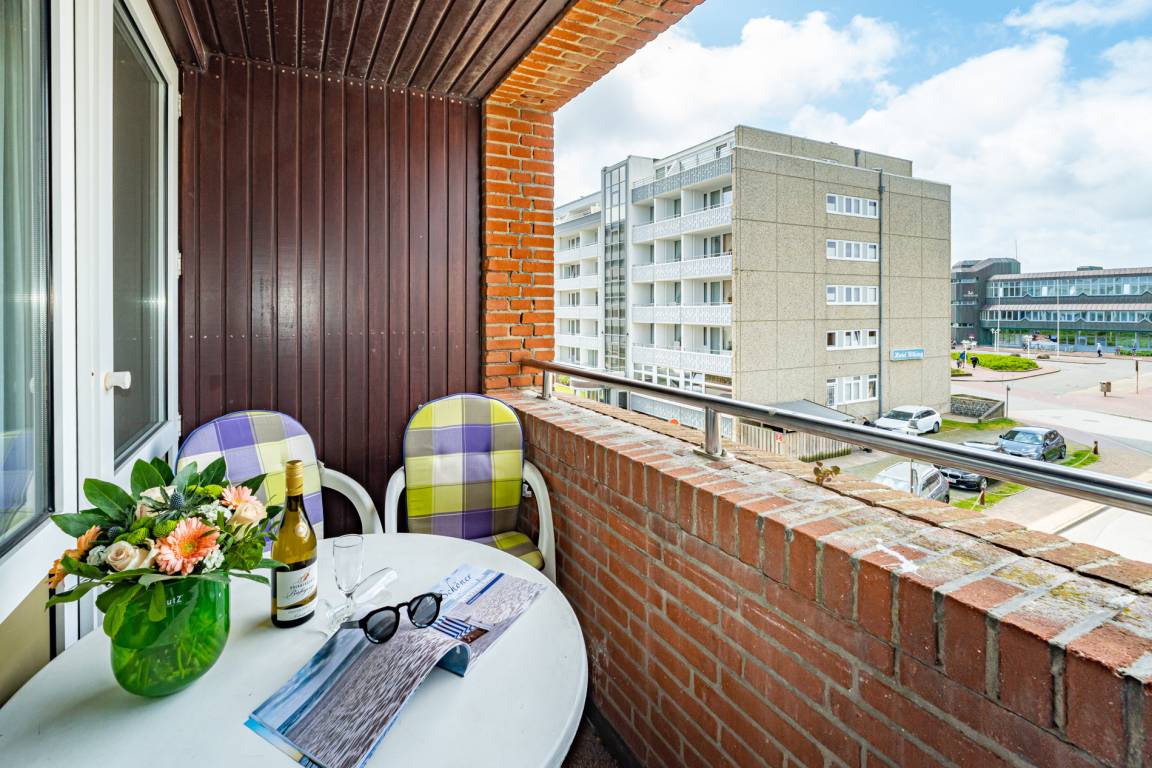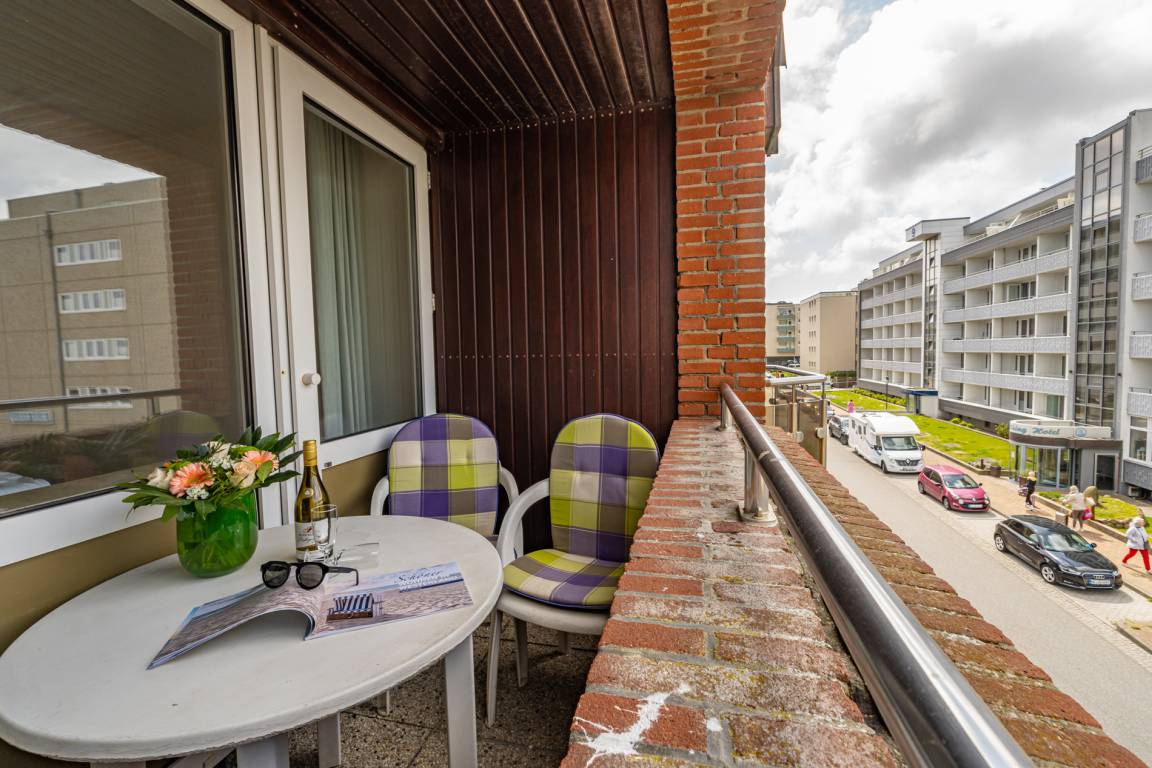 Komfortabel ausgestattete 2,5-Zimmer-Ferienwohnung,ca. 60 qm, Nichtraucher, mit Westbalkon (Nachmittagssonne, mit Balkonmöbeln und Auflagen), in der 2. (obersten) Etage für max. 5 Personen.