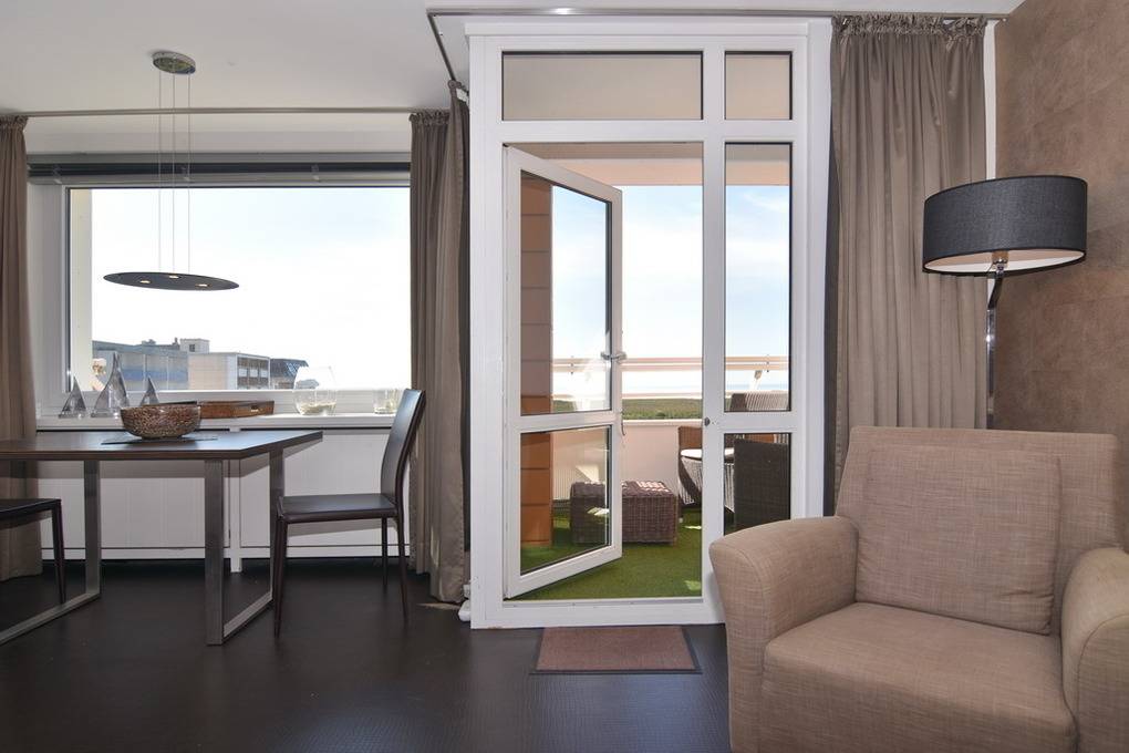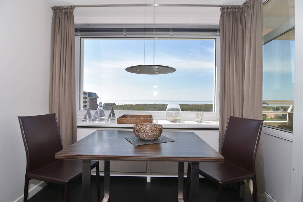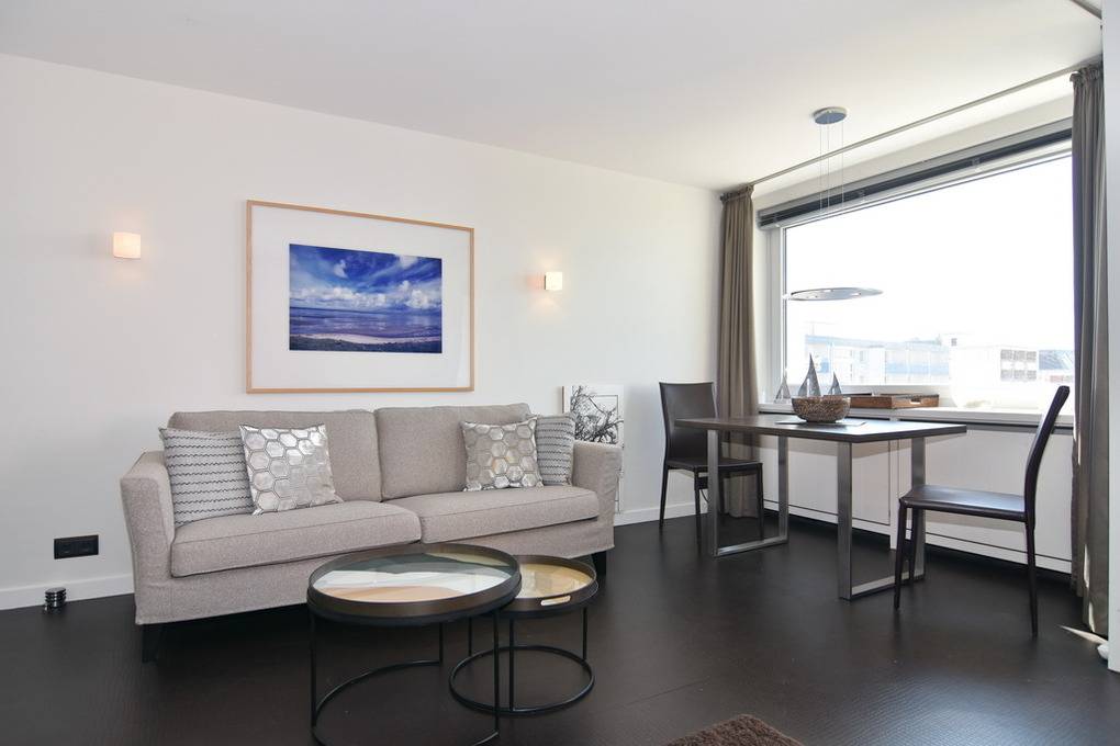 "Tö Fiirens" - friesisch für "In der Ferne". Exklusive 1-Zimmer-Ferienwohnung im "Windhuk". Ca. 44m² im 5. OG mit freiem Seeblick. Die perfekt gestaltete Wohnung bietet ein erhöhtes Doppelbett mit Seeblick, eine Couchecke sowie einen Essplatz am Fenster. Die separate Küche ist mit Geschirrspüler und Mikrowelle ausgestattet, großzügiges Duschbad/WC. Flat-Screen, Stereoanlage mit Dockingstation, Internet/dt. Festnetzflat, Safe, Westbalkon mit Balkonmöbeln, Pkw-Stellplatz Nr. 37. Bettwäsche und Handtücher sind zur Anreise aufgezogen. Waschküche im Haus!