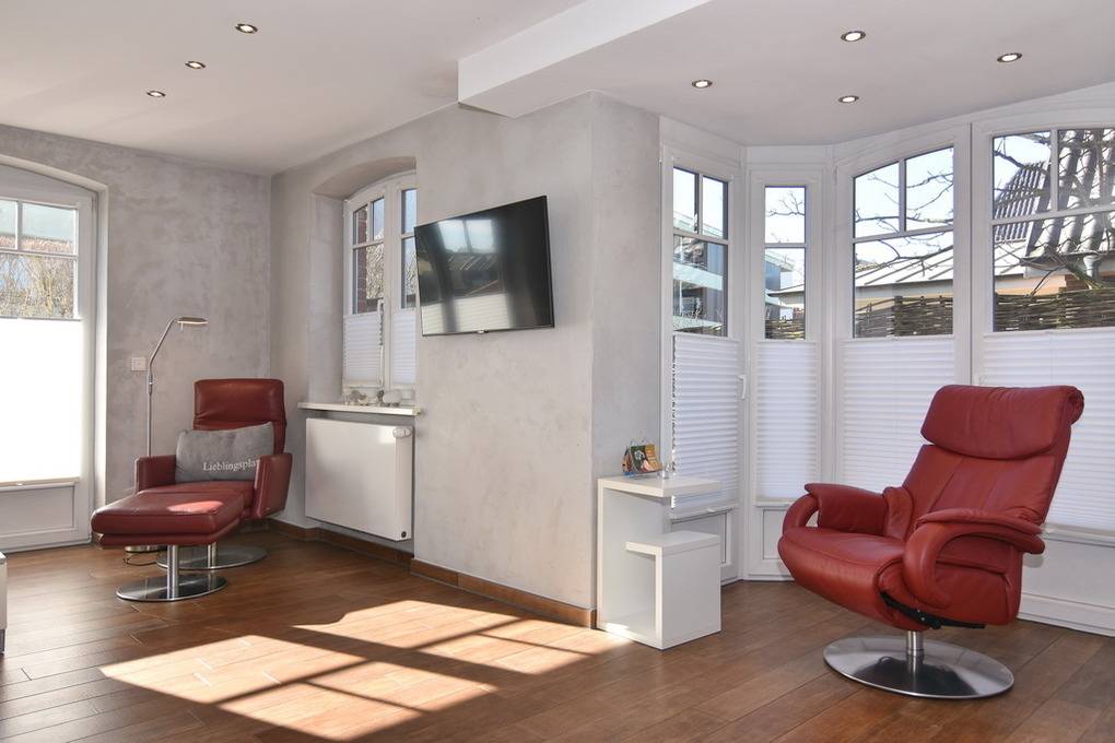 Exklusive 3-Zimmer-Ferienwohnung unweit des Badestrands. Ca. 85m², Nichtraucher! EG: großzügiges Wohnzimmer mit Ledergarnitur (3-Sitzer, 2 Sessel), Essbereich mit Lederbank und -eckbank, offene Küche mit Geschirrspüler und Mikrowelle, Süd-West-Terrasse mit Strandkorb, 4 Stühlen und Tisch, Flachbild-TV, Internet und Telefonflatrate (Festnetz), ohne Gewähr, Duschbad/WC. UG: 1 Schlafzimmer mit Boxspringbett, Flat-TV und großem Einbauschrank, 1 Schlafzimmer mit 2 Einzelbetten (190 und 200cm), Flat- TV und kleiner Abstellkammer, Duschbad /WC mit Regendusche. Waschmaschine und Trockner sind vorhanden. Pkw-Stellplatz. Tierhaltung ist nicht gestattet. Bettwäsche und Handtücher sind zur Anreise aufgezogen.
