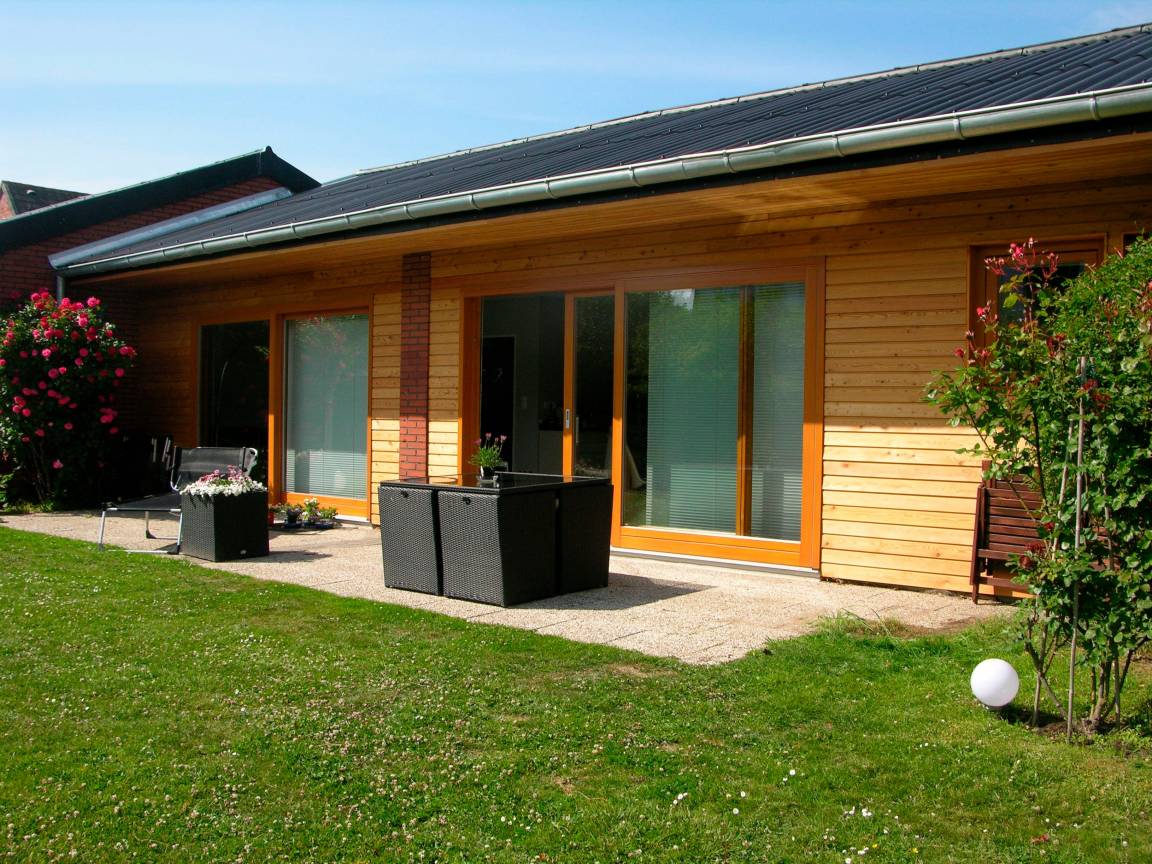 Der lichtdurchflutete Bungalow XL hat 3 Schlafzimmer (2x Doppelbett, 1x Etagenbett) 2 Bäder und bietet 6 Personen Platz. Die Räume sind modern und sehr gemütlich. Sie haben eine grosse Südterrasse, Garten und Parkplatz. 400m zum Strand 800m zur City.