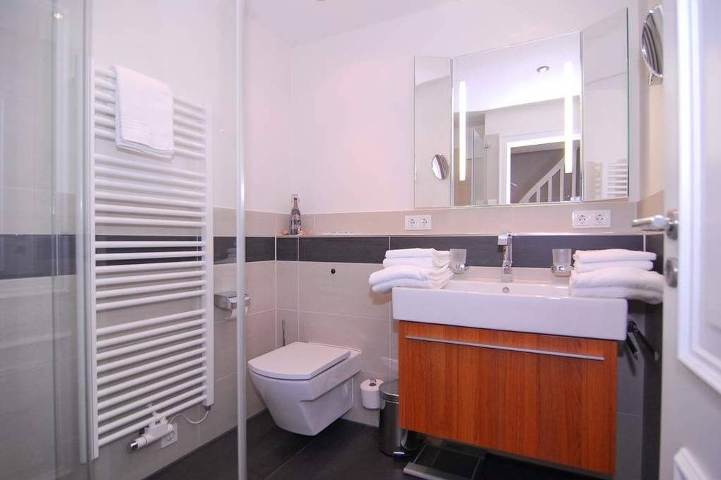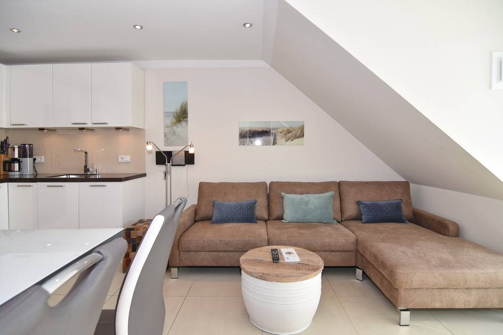 Exklusive 3-Zimmer-Ferienwohnung in der Residenz "Alva" mit Wellnessbereich (Pool, Sauna, Dampfsauna) unweit des Badestrands und der Fußgängerzone. Ca. 56 m². Nichtraucher. OG.: Wohnraum mit Couch und Sesseln, Essplatz, WLAN u. Telefonflatrate ins dt. Festnetz, Flat-TV mit BluRay-Player, Stereo-Anlage mit CD und iPhone-Adapter, Südbalkon mit Balkonmöbeln, offene Küche mit Mikrow., Backofen und Geschirrspüler, Duschbad/WC, Schlafzimmer mit Doppelbett, Flur. DG: 1 Schlafzimmer mit Doppelbett, Flat-TV m. BluRay-Player, Gäste / WC. Alle Steckdosen sind kindergesichert! PKW-Stellplatz Nr. 13. Waschküche im Haus! Bettwäsche und Handtücher sind zur Anreise aufgezogen. Tierhaltung ist nicht gestattet! Auf dem östlich angrenzenden Nachbargrundstück entsteht ab März 2024 ein Neubauvorhaben, hier kann es zu Lärmbelästigungen kommen.