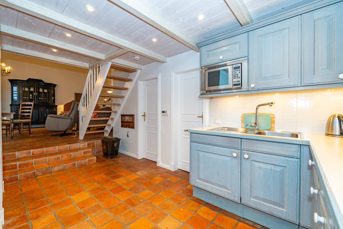 Die separate Küche ist mit Ceranfeld, Geschirrspüler, Mikrowelle und Backofen. Kaffeemaschine, Wasserkocher und Toaster gehören zur Grundausstattung.