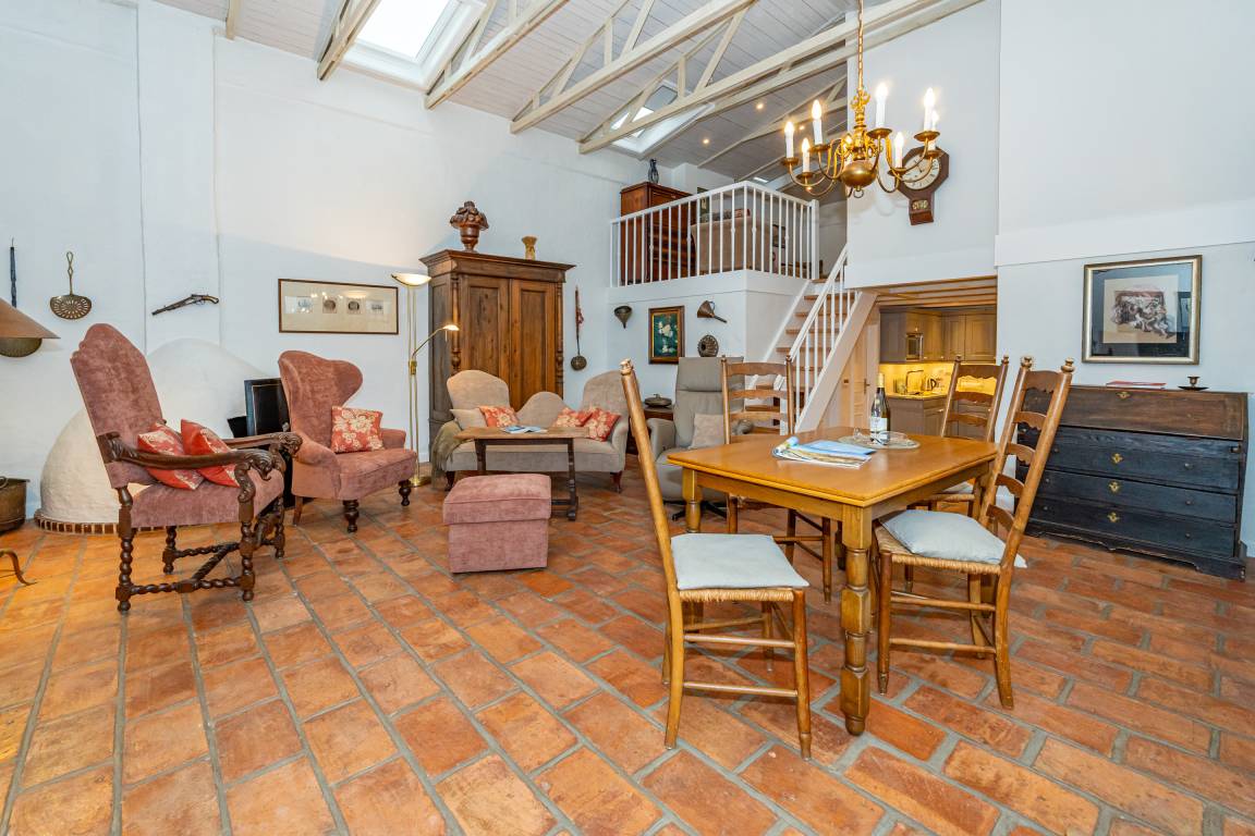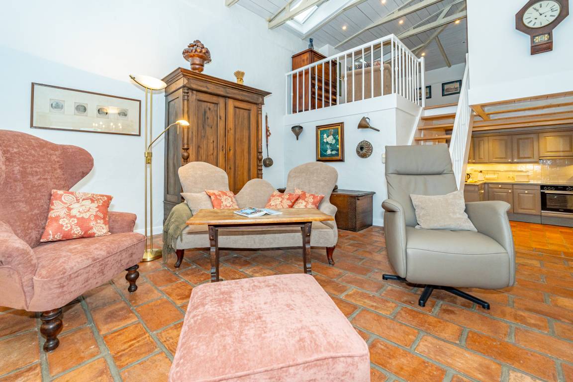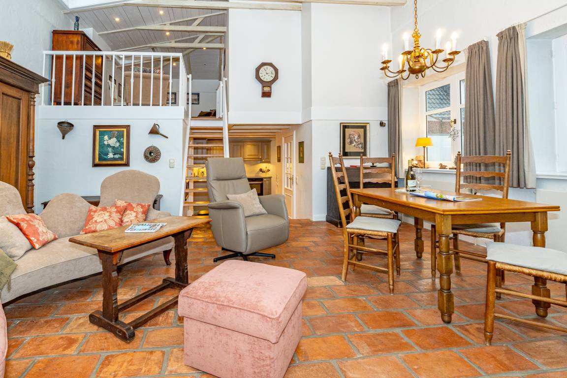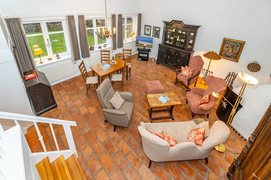Im Wohnzimmer befinden sich eine Couch und zwei Sessel vor dem Kamin, eine Essecke, Kabel-TV, Stereoanlage, DVD-Player, Telefon mit Internetflatrate (DSL).