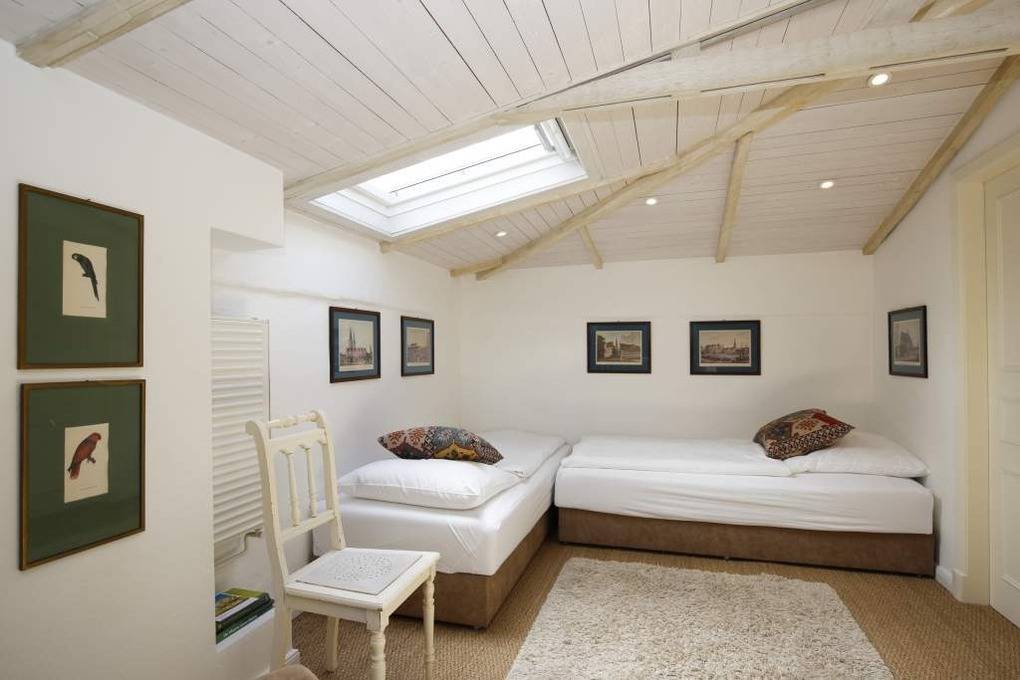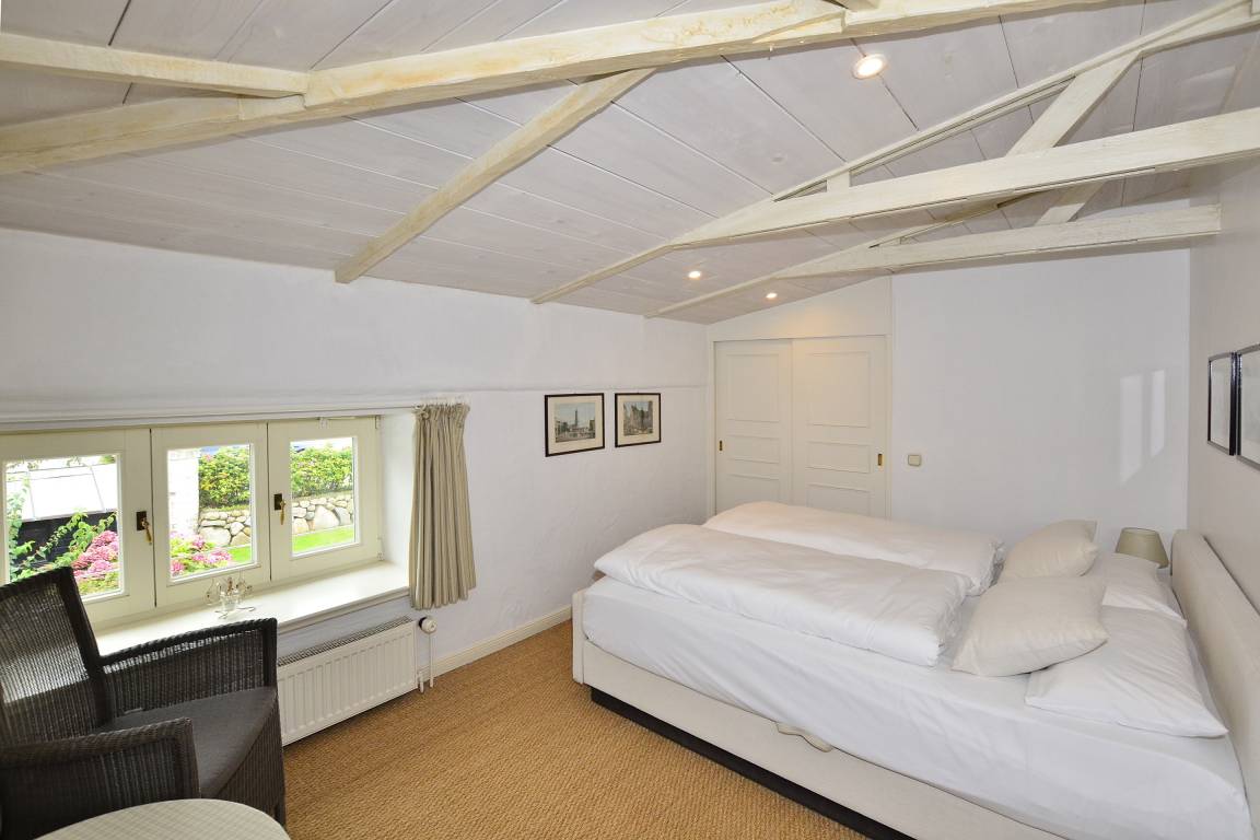 Im OG befinden sich zwei über Eck stehende Betten (0,90 x 2,00 m) und ein Sessel auf der offenen Empore.