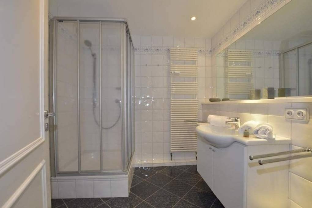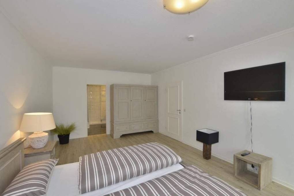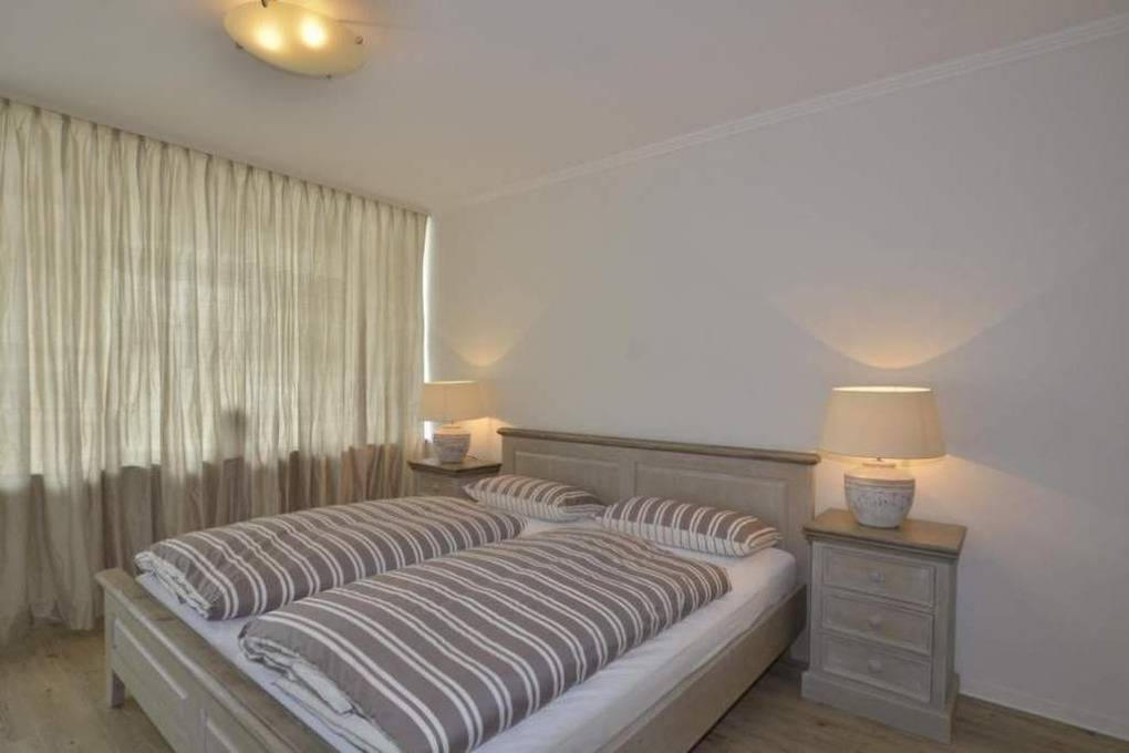 Vom Wohnzimmer aus betreten Sie das Schlafzimmer mit einem Doppelbett (zwei Einzelmatratzen je 0,90 x 1,95 m) und einem zweiten Kabel-Flachbild-TV. Auch hier haben Sie Zugang zur zweiten Loggia. Das Schlafzimmer verfügt über einen direkten Zugang zum hellen Duschbad mit WC, Fön und modernen Armaturen.