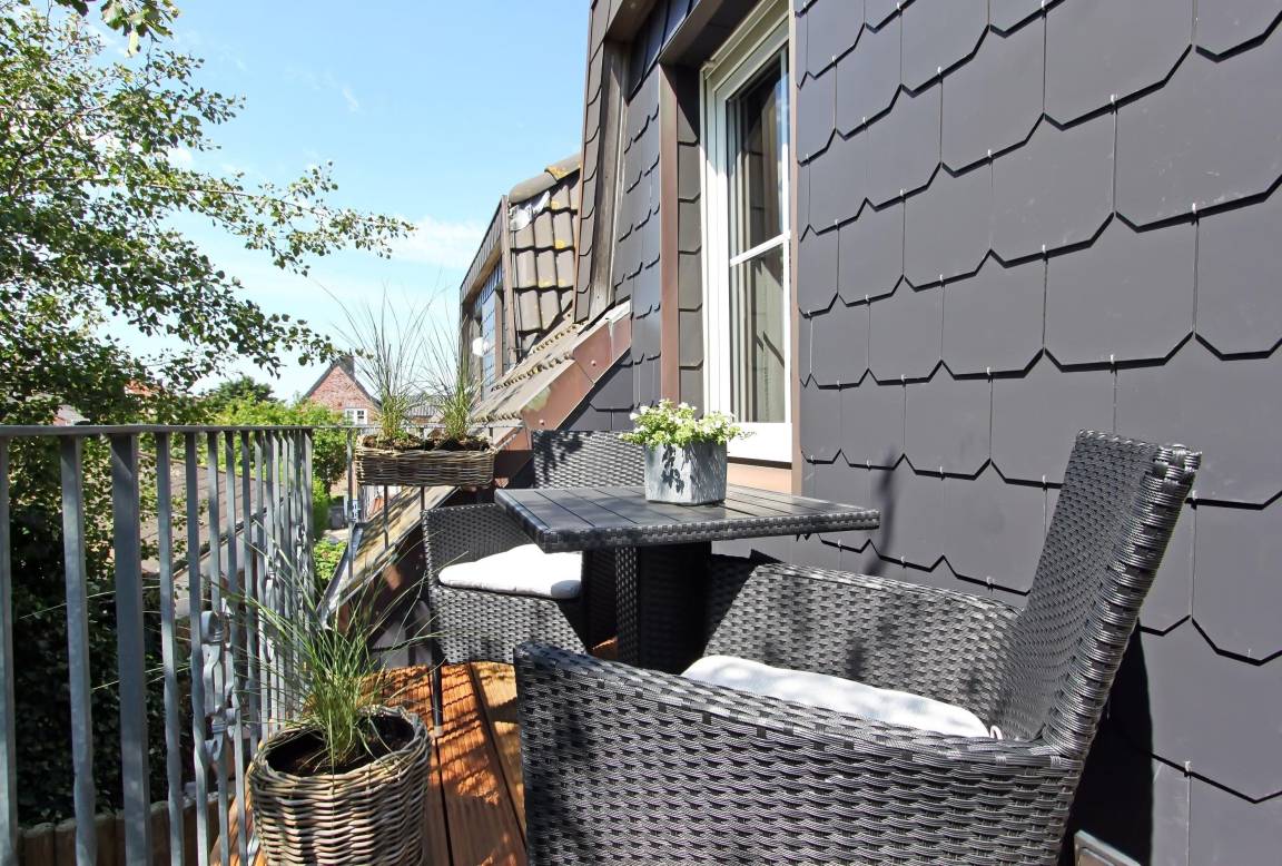 Der meist windabgewandte Ostbalkon mit Morgensonne und schönem Blick in den Garten lädt, wie auch der Südbalkon, zum Essen im Freien ein.