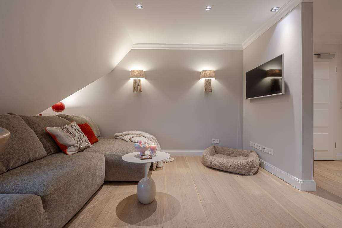 Die Lage ist perfekt: Die Westerländer Promenade, Restaurants, Cafés und Geschäfte liegen nur wenige Schritte entfernt. Direkt gegenüber befindet sich die Sylter Welle mit Meerwasserbad und Saunabereich.