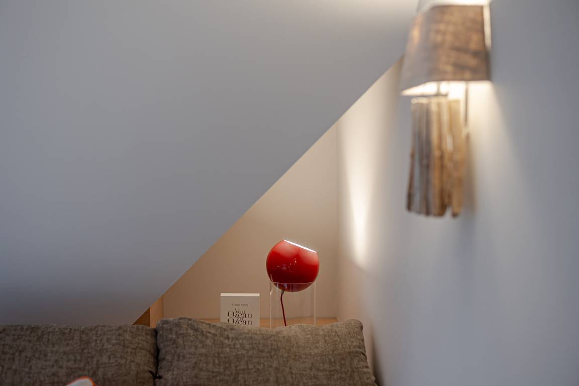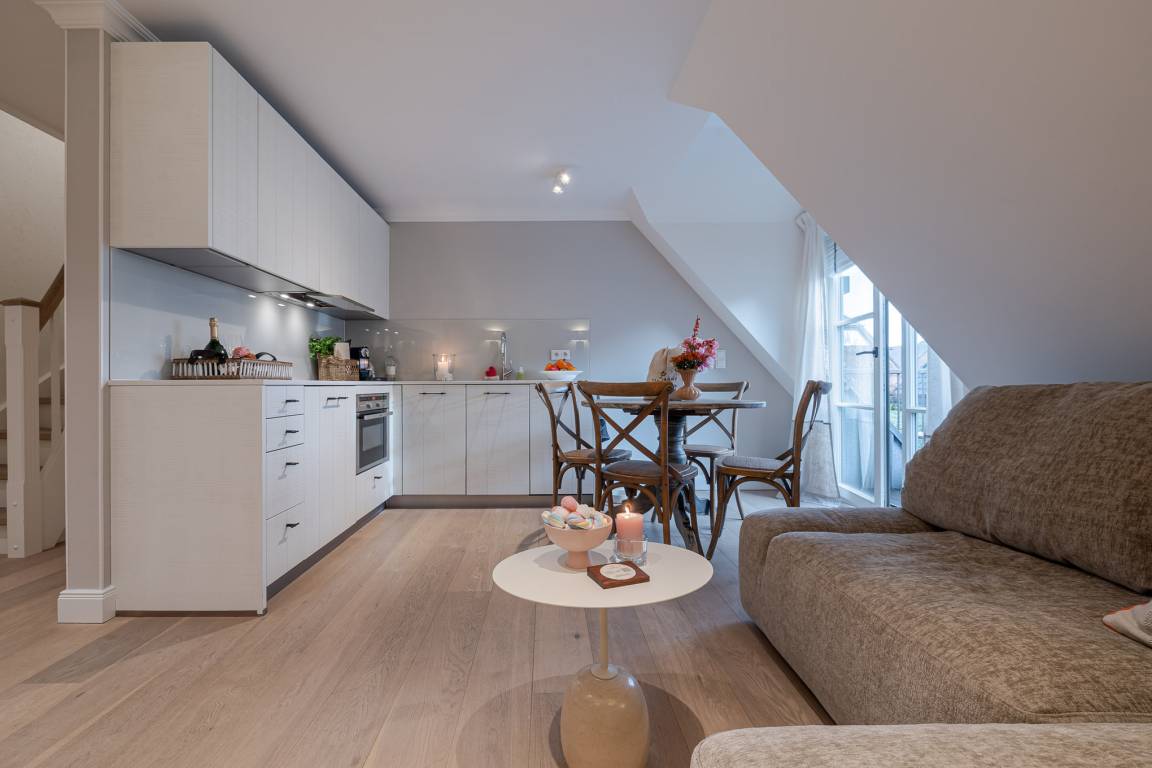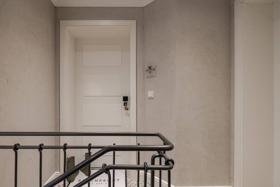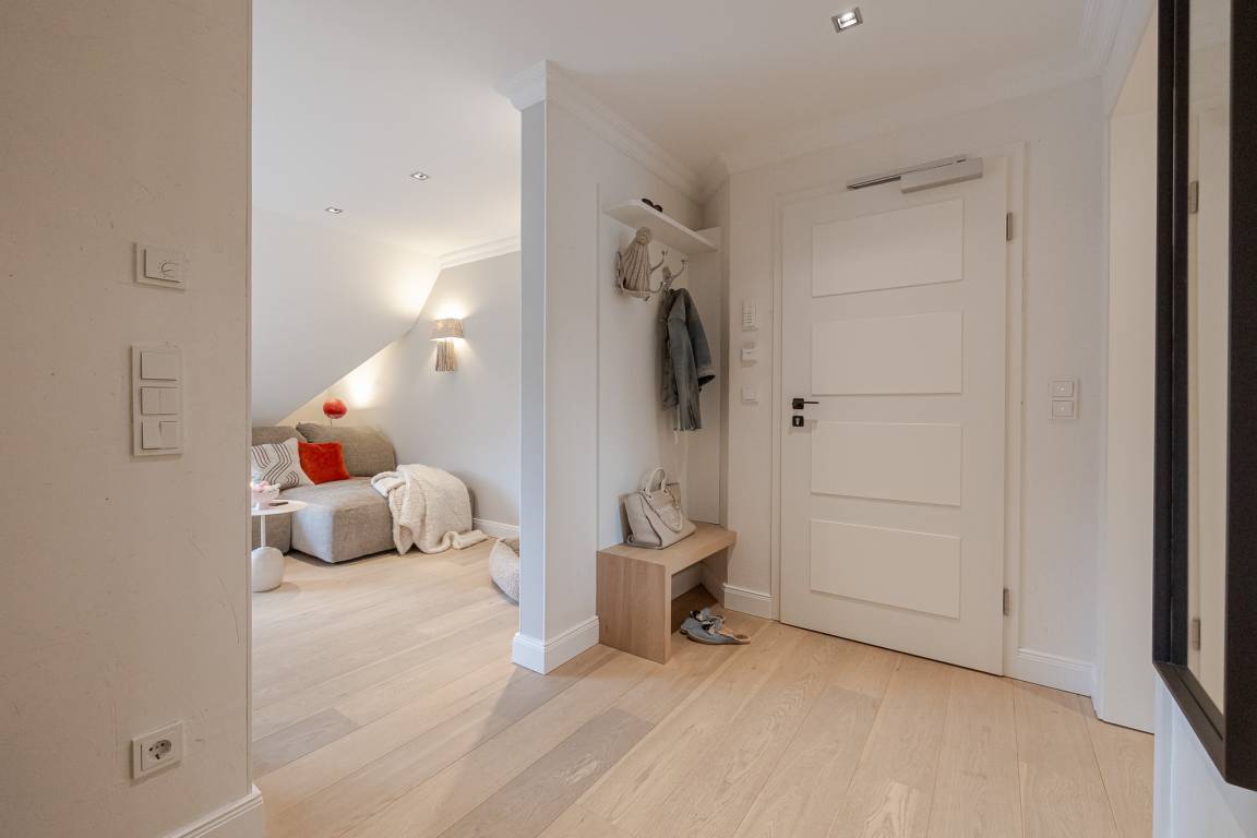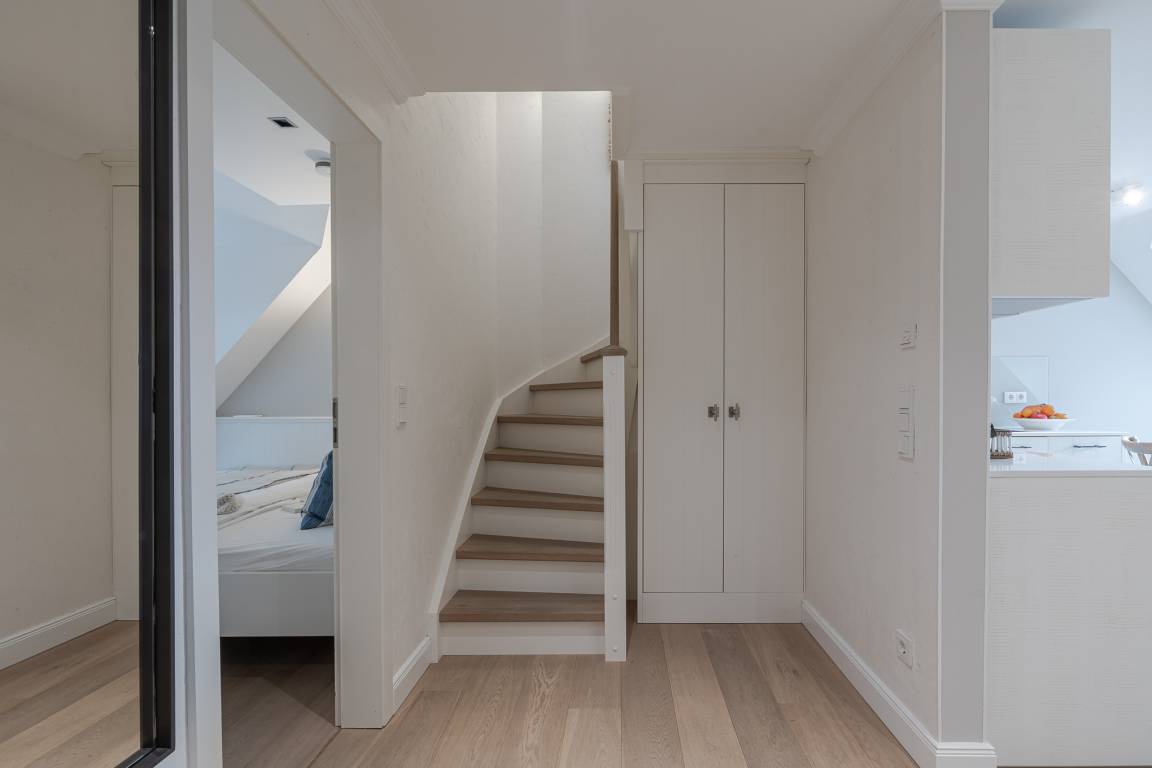 Die ca. 54 m² große Wohnung bietet Platz für 2 Erwachsene und ein Kleinkind und befindet sich im 2. Obergeschoss. Sie ist bequem mit dem Aufzug erreichbar, anschließend führt eine kleine Treppe zur Wohnung.