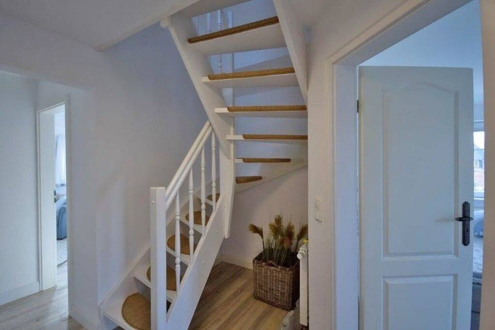 Die 4-Zimmer-Ferienwohnung mit West-Balkon befindet sich im Obergeschoss und Spitzboden des Hauses. Neben dem Elternschlafzimmer befinden sich 2 weitere kleine Schlafzimmer im SB für insgesamt 4 ( eventuell 5 ) Personen. Es gibt ein Wannenbad ( mit Duschmöglichkeit ) und ein Gäste-WC.