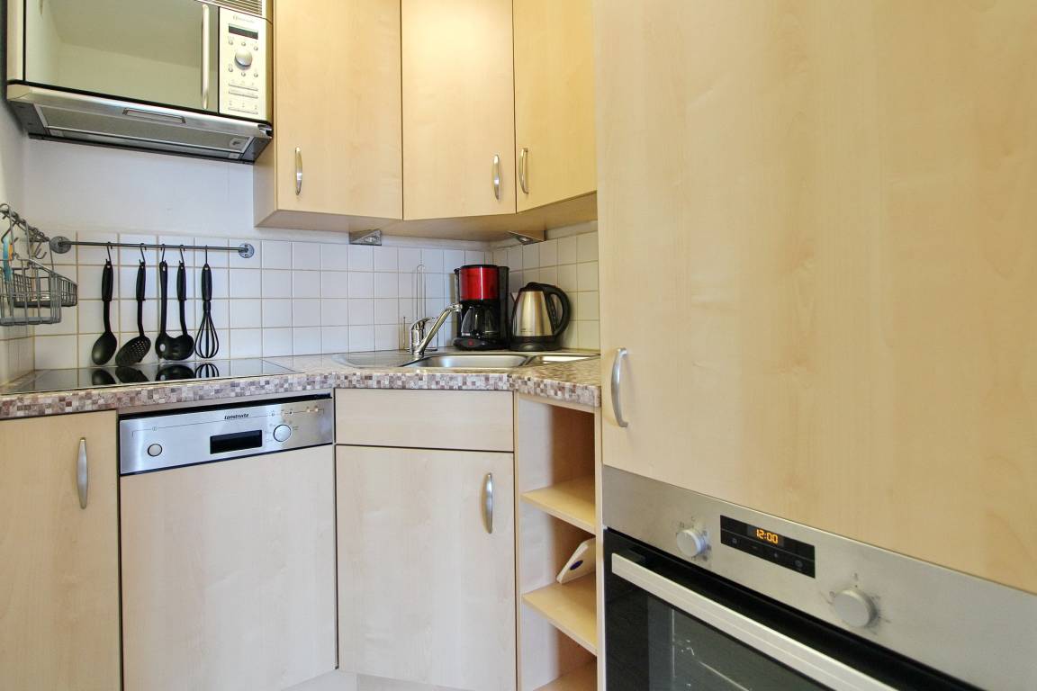 Das Schlafzimmer verfügt über hochwertige Boxspringbetten sowie einen Kleiderschrank. Auch hier steht Ihnen ein LCD-Fernseher sowie ein Radiowecker zur Verfügung. Das Bad wurde ebenfalls aufwendig renoviert und bietet eine Dusche mit Lichtpaneel und einen Handtuchheizkörper. Die kleine, aber feine, Küche ist maßgefertigt und bietet alles, um auch im Urlaub bequem kochen zu können. Sie verfügt über ein Cerankochfeld (4 Kochstellen), ein Backofen und eine Mikrowelle, eine Dunstabzugshaube, einen Geschirrspüler sowie viele nützliche Küchenhelfer (Kaffeemaschine, Toaster, Wasserkocher, Dreimix, Waffeleisen usw.). Die gesamte Nichtraucherwohnung ist mit einem neuen Design-Fussboden ausgelegt und den kostenfreien WLAN HOT Spot (Haus Brandenburg - Passwortfrei - ohne Gewähr) können Sie nutzen. Ein eigener Parkplatz (Nr. 106) gehört zur Wohnung dazu und auch Fahrräder können hinter dem Haus abgestellt werden. Die Wohnung hat eine Größe von ca. 48 m².
