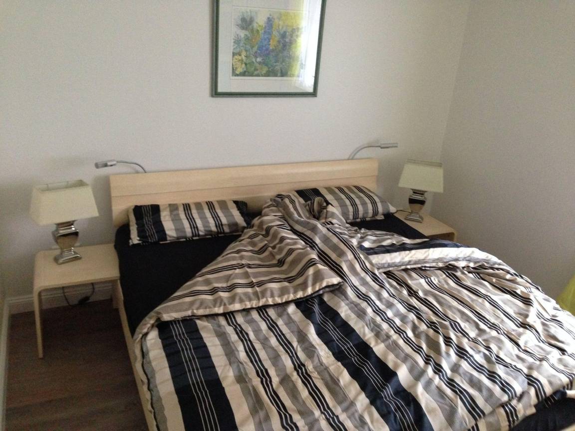 Großzügiges Schlafzimmer mit Doppelbett 180 X 200 mit neuen hochwertigen Matratzen, Toper, in Komforthöhe sowie Lattenrost.