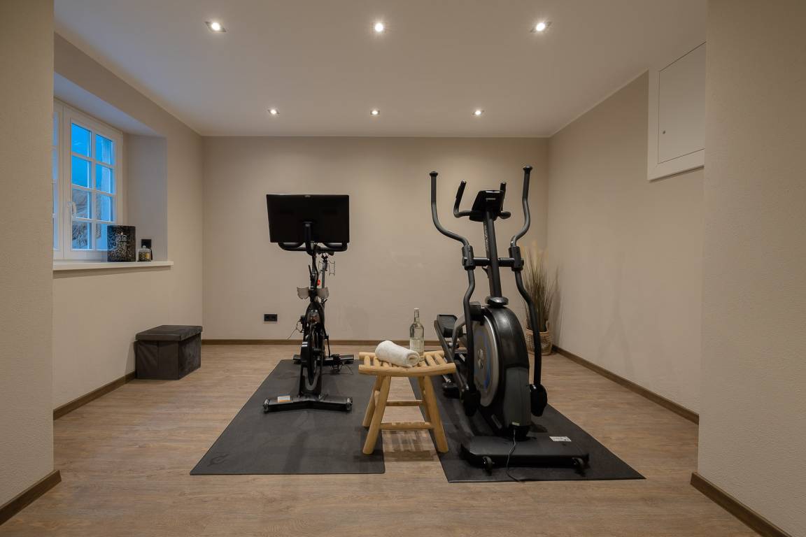 Als Gast von Living Lorens nutzen Sie kostenfrei den gemeinschaftlichen Fitnessraum mit Peloton®-Bike, Crosstrainer und Spiegelwand. Yogamatten können auf Wunsch dazugebucht werden. Anschließend lädt die Sauna mit Liegen zum Entspannen ein.