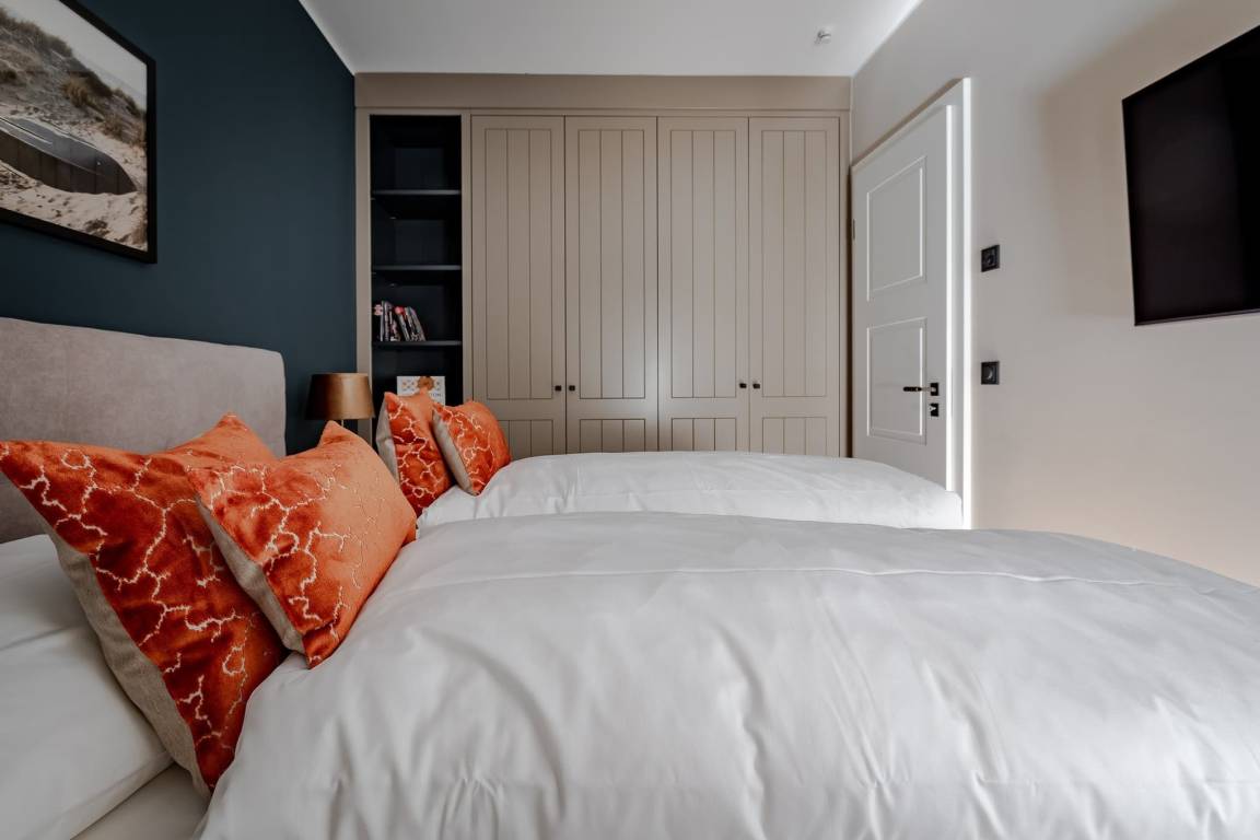 Die Wohnung verbindet Sylter Leichtigkeit mit modernem Komfort. Hohe Decken, viel Tageslicht und eine klare, elegante Einrichtung schaffen sofort ein Gefühl von Ruhe und Weite. Der offene Wohn- und Essbereich ist der Mittelpunkt der Wohnung. Hier lädt ein bequemes Schlafsofa zum Lesen, Entspannen oder gemütlichen Zusammensitzen ein.