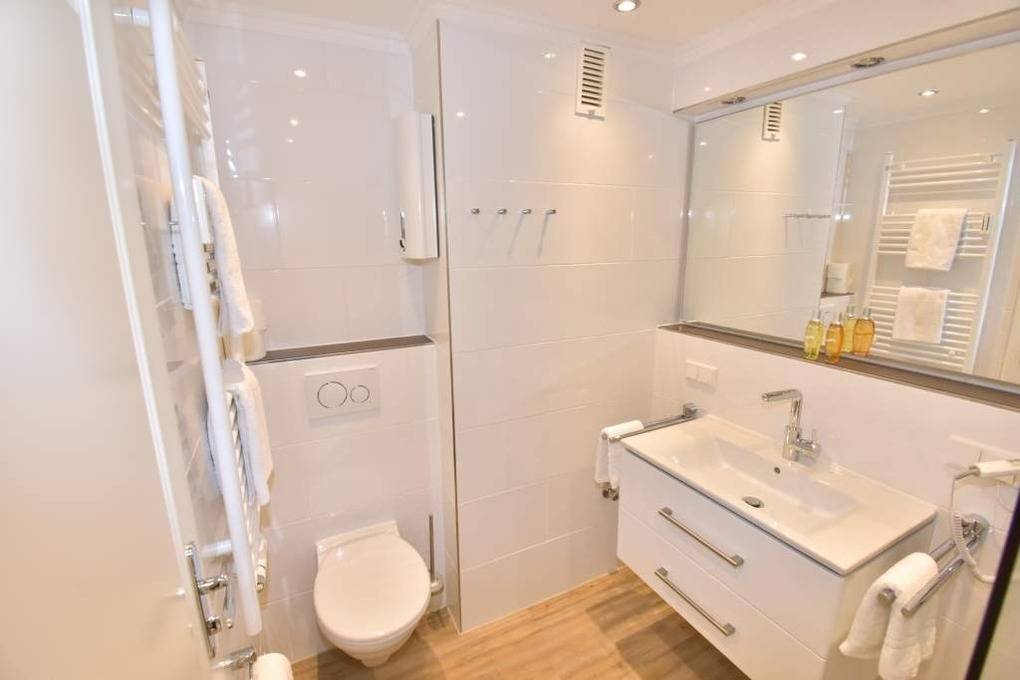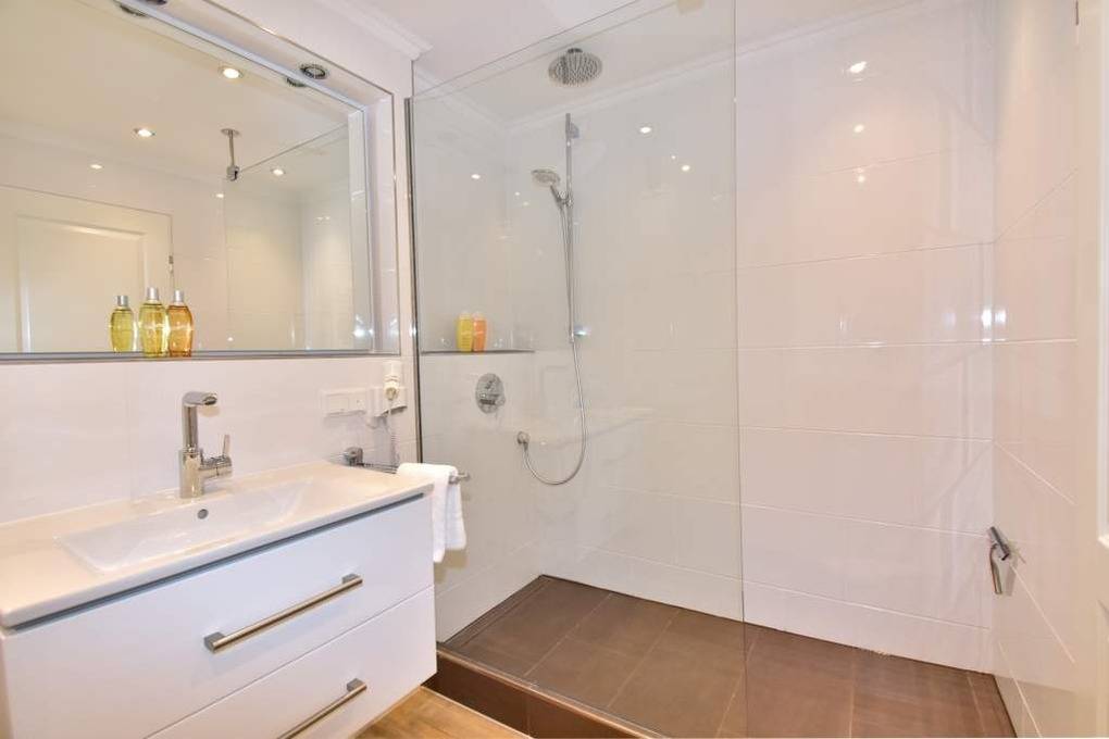 Im neuen Bad befinden sich eine Dusche, ein WC und ein Waschtisch.