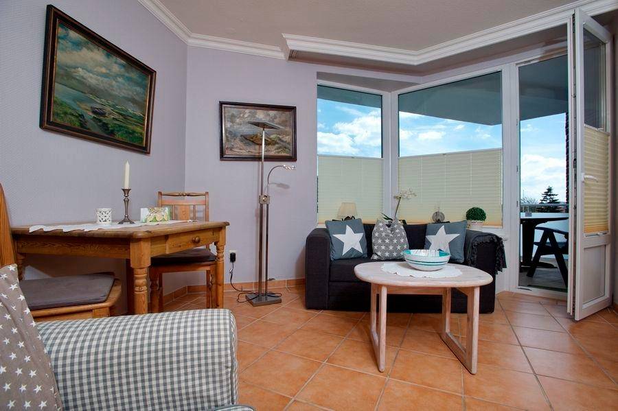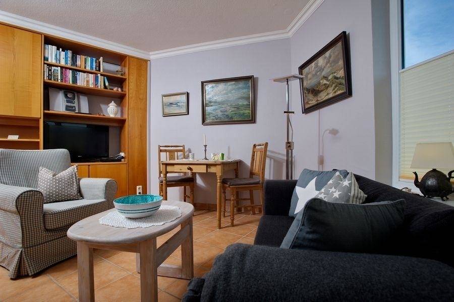 Das Appartement hat ein Wohnzimmer mit Essbereich