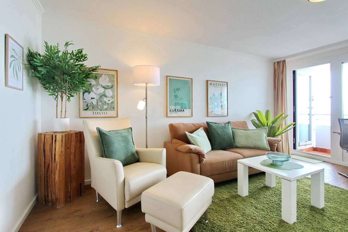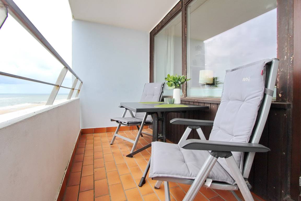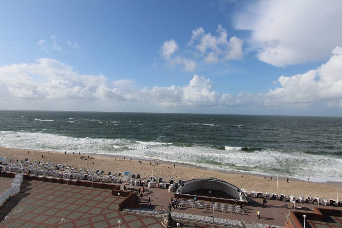 Wohlfühlappartement in der 5. Etage im Haus Metropol mit herrlichem Weitblick über den Strand und die Nordsee. Hell und freundlich eingerichteter Wohn-/Schlafraum mit vorgelagertem Westbalkon mit Balkonmöbeln. Zwei Einzelschrankbetten eine bequeme Couch und ein Sessel sind vorhanden und in der Wohnung wurde hochwertiger Designfussboden in Holzoptik verlegt. Am Essplatz am Fenster können sie alle Mahlzeiten zu sich nehmen und dabei den Blick aufs Meer genießen. Im Badezimmer gibt es eine Dusche, einen Fön, Handtuchtrockner, einen mobilen Haltegriff und einen Duschhocker. In der modernen Einbauküche mit Geschirrspüler, Cerankochfeld, Mikrowellen-Backkombination und zusätzlicher Nespressomaschine lassen sich bequem Mahlzeiten zubereiten. Selbst ein Mixer und Milchaufschäumer sind vorhanden und mit dem hochwertigen Geschirr von Seltmann Weiden decken Sie stilvoll den Tisch. Zur technischen Ausstattung der Wohnung gehört ein Flachbildfernseher, eine Bluetoothanlage mit CD Player und Radio von Sony und ein Blue Ray Player. Das freie WLAN Netzwerk (WEG Haus Metropol - Passwortfrei - ohne Gewähr) steht ihnen kostenfrei zur Verfügung. Diese Nichtraucherwohnung ist ca. 34 m² groß.