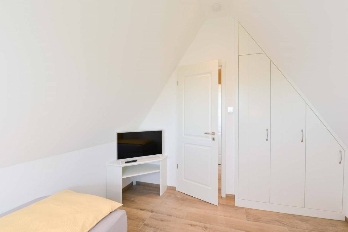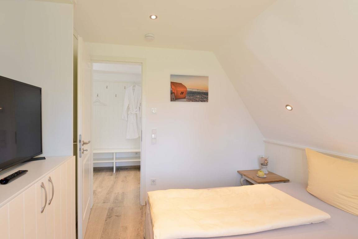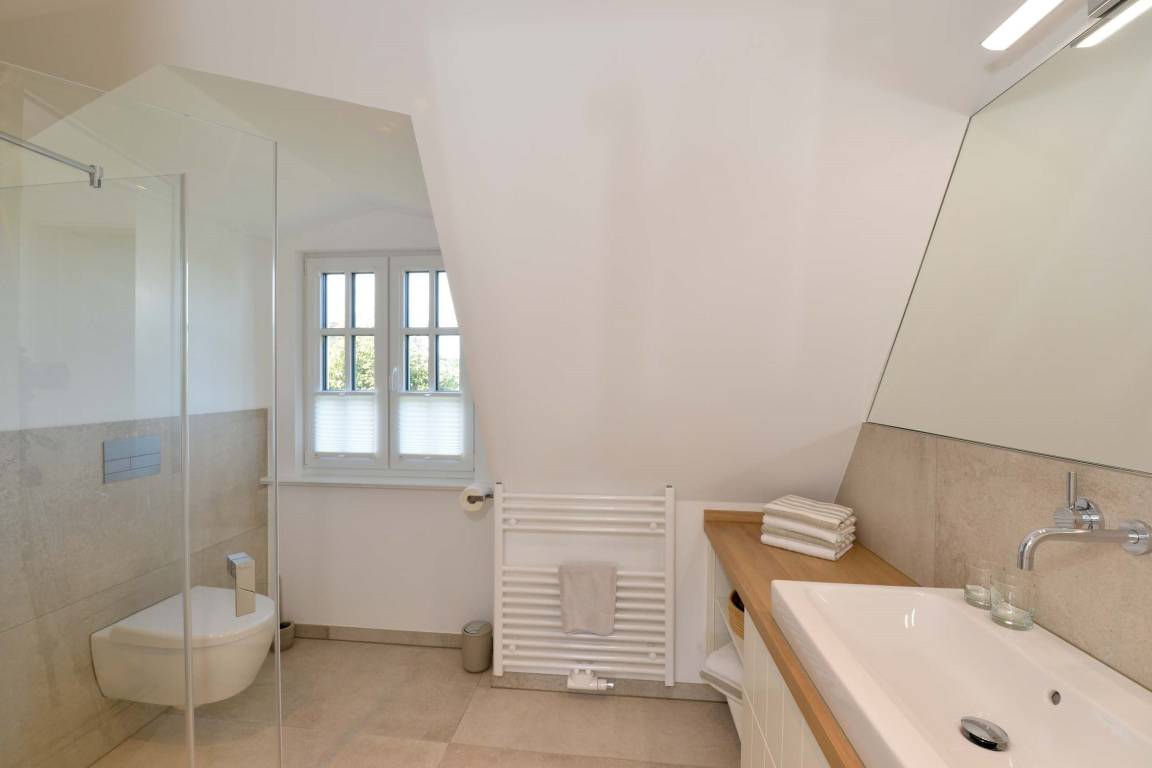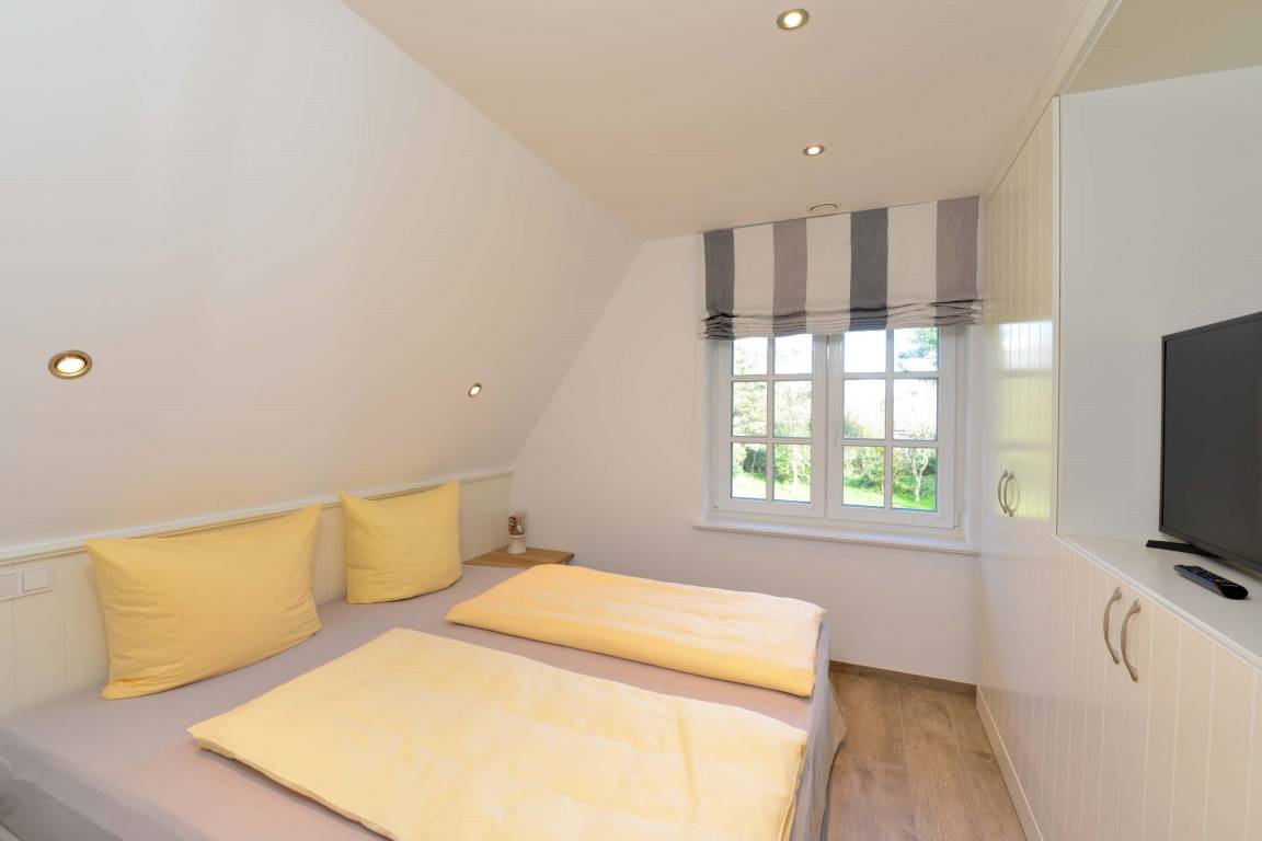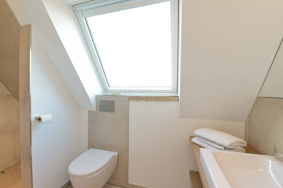 Im Spitzboden gibt es ein weiteres Schlafzimmer mit zwei Einzel-Boxspringbetten, die auf Wunsch zusammengestellt werden können. Auch hier gibt es ein Duschbad sowie eine Sauna.