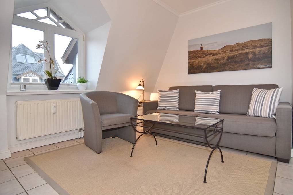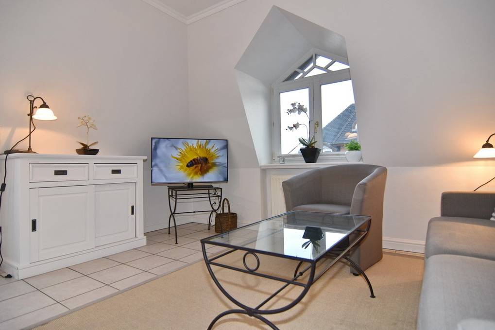 Hübsche 2-Zimmer-Ferienwohnung im Haus Hopfengarten, App. 4, ca. 45 m², OG/DG. OG: Wohnraum mit Schlafcouch, Eßplatz, Kabel-TV,Radio,Telefon, WLAN (ohne Gewähr) und Ostbalkon, Pantry-Küche mit Mikrowelle und Geschirrspüler, Duschbad/WC. Offenes Dachgeschoß mit Schlafzimmer, Doppelbett (160x200) und Einbauschrank. PKW-Stellpl. Nr. 4, Fahrradabstellraum. Tierhaltung ist nicht gestattet. Bettwäsche und Handtücher sind zur Anreise aufgezogen.. Nichtraucher-Appartement!
