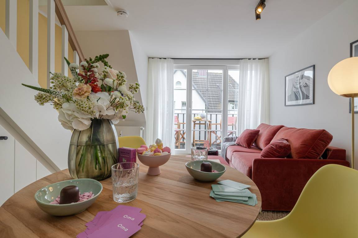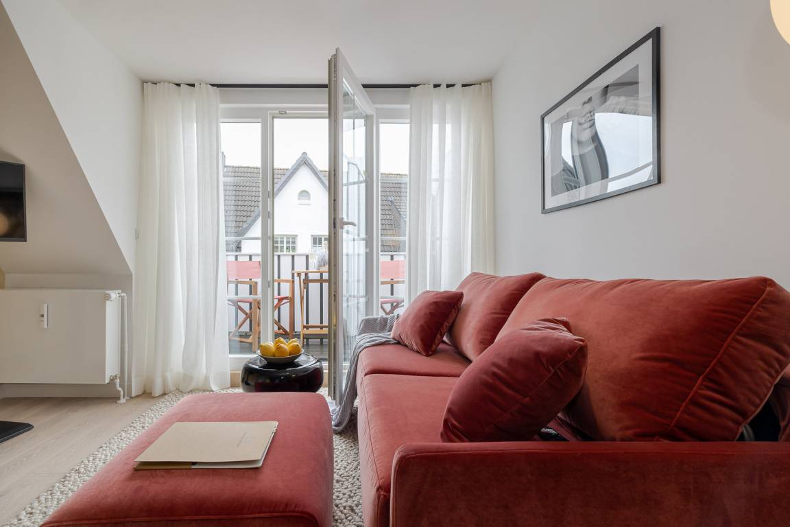 Schon beim Ankommen spüren Sie die besondere Atmosphäre: hohe, helle Räume, edles Sylter Eichenparkett und eine moderne, harmonisch abgestimmte Einrichtung sorgen für einen rundum entspannten Start in den Urlaub. Der Wohn- und Essbereich lädt zum Lesen, Entspannen oder gemütlichen Zusammensitzen ein. Das bequeme Sofa lässt sich bei Bedarf in eine komfortable zusätzliche Schlafgelegenheit verwandeln. Die offene Küche ist hochwertig ausgestattet und mit Markengeräten von Siemens bestückt. Hier finden Sie alles, was Sie für Frühstück, kleine Gerichte oder ein entspanntes Abendessen benötigen.