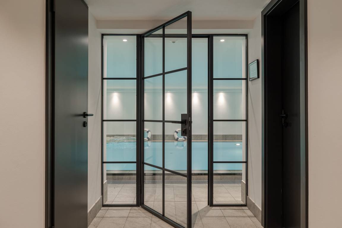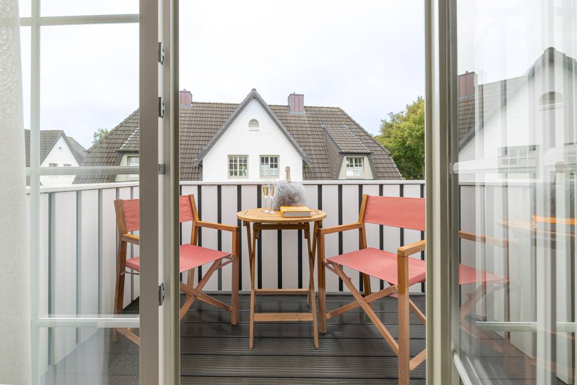 Über eine Treppe gelangen Sie in den Schlafbereich auf dem Oberdeck. Ein komfortables Schramm-Boxspringbett und maßgefertigte Einbauschränke sorgen hier für ruhige Nächte und viel Stauraum. Ein echtes Highlight ist der Balkon, auf dem von Mai bis Oktober bequeme Möbel bereitstehen – perfekt, um die frische Nordseeluft zu genießen oder den Tag bei einem Glas Wein ausklingen zu lassen. Als Gast nutzen Sie kostenfrei den 200 m² großen Pool- und Saunabereich im Dock 6d mit 12 × 4 m Pool, moderner Sauna und Fitnessbereich (Laufband, Bike, Rudergerät, Gewichte).
