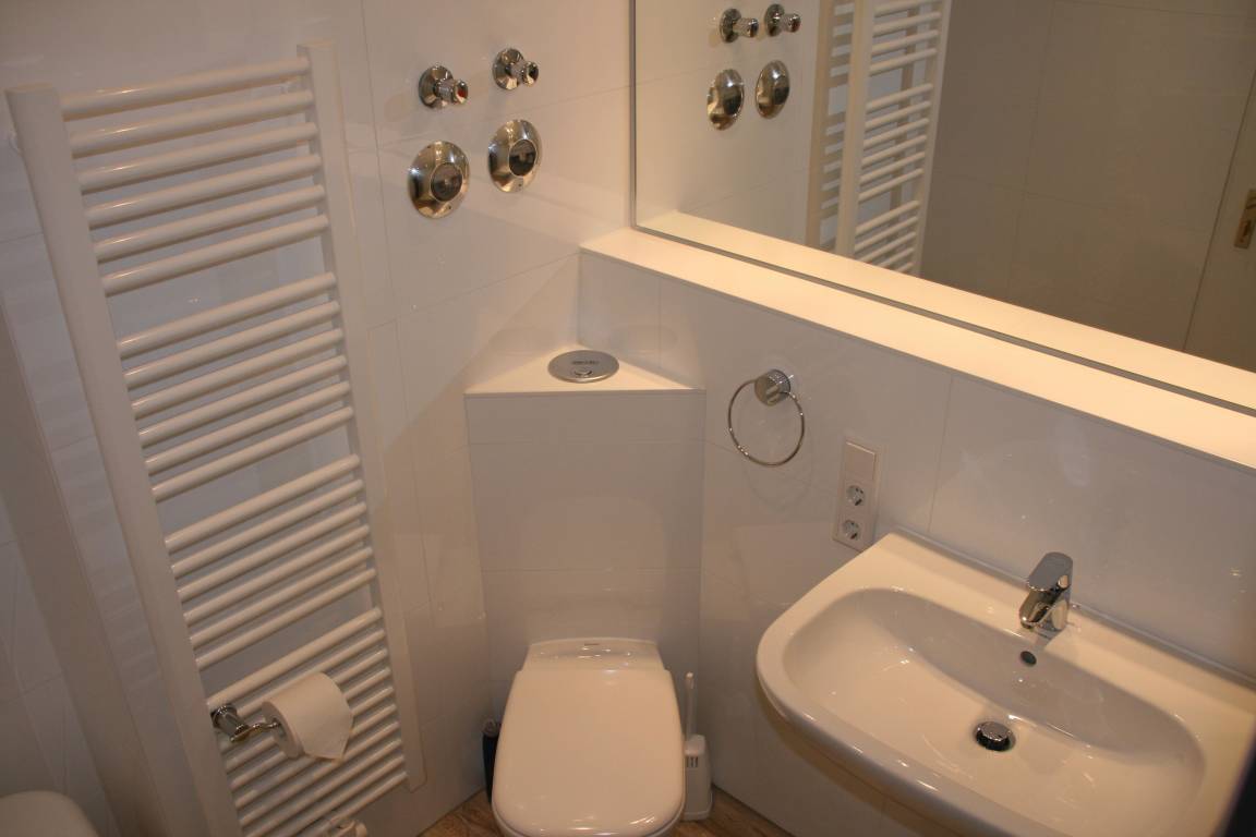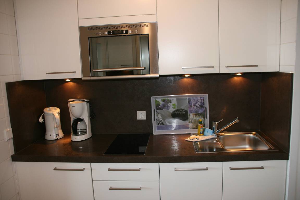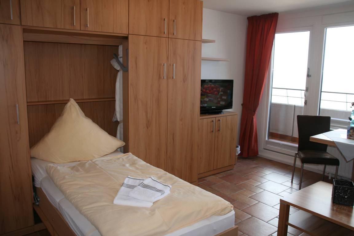 Vorflur mit moderner Küchenzeile mit Geschirrspüler, modernes helles Duschbad / WC, heller freundlich eingerichteter Wohn-/Schlafraum mit 2 Einzelschrankbetten, gemütliche Sitzgarnitur (Sofa und Sessel), Essplatz am Fenster. Flachbildfernseher, hauseigenes freies WLAN, Radio mit CD-Player. Ein Balkon rundet dann dieses schöne und neu renovierte, ca. 34 qm große App. ab. Ein Abstellplatz in der Tiefgarage kann extra hinzugemietet werden. Der Tiefgaragenplatz muss bestellt werden, ansonsten verfällt der Anspruch!