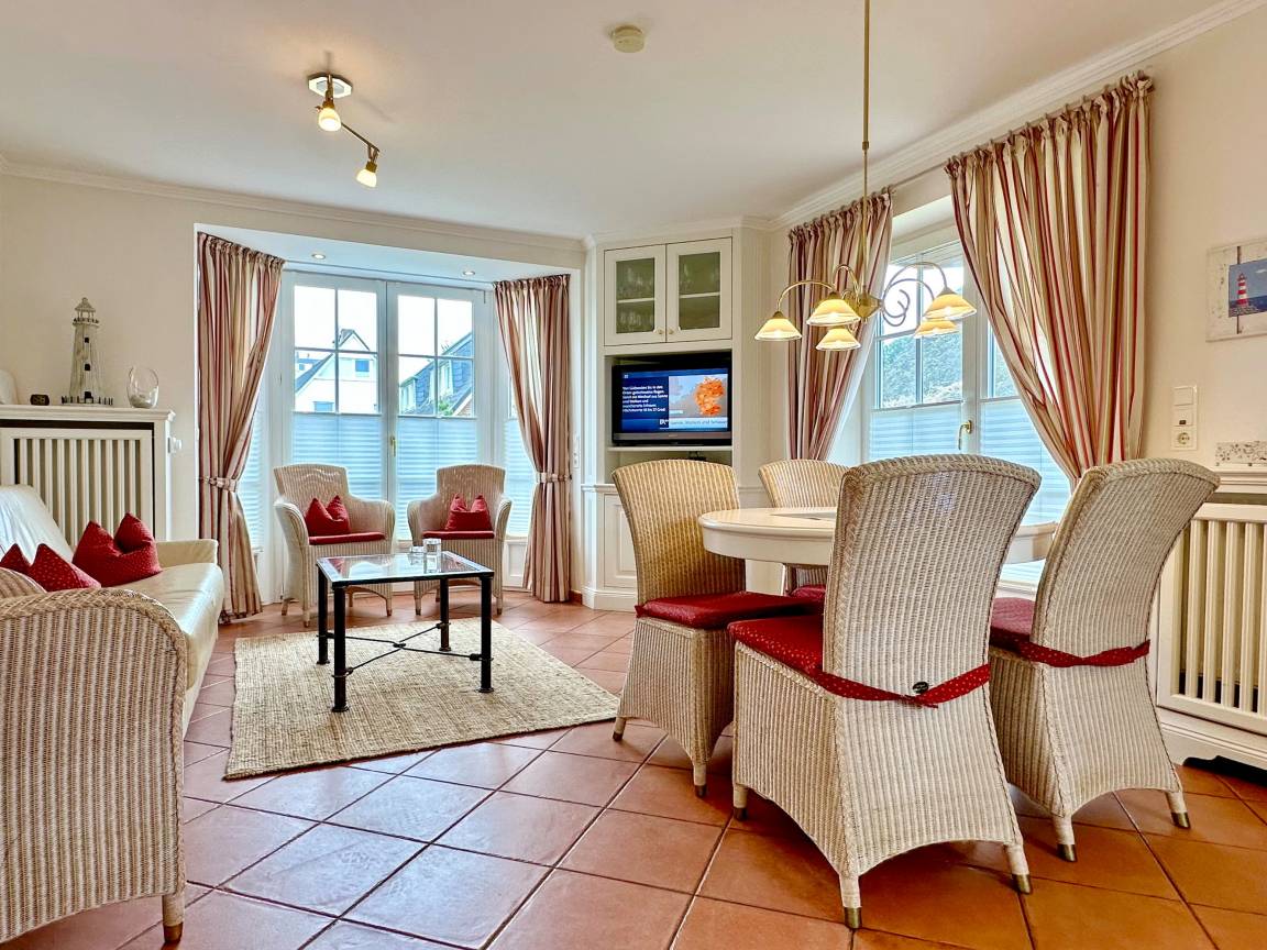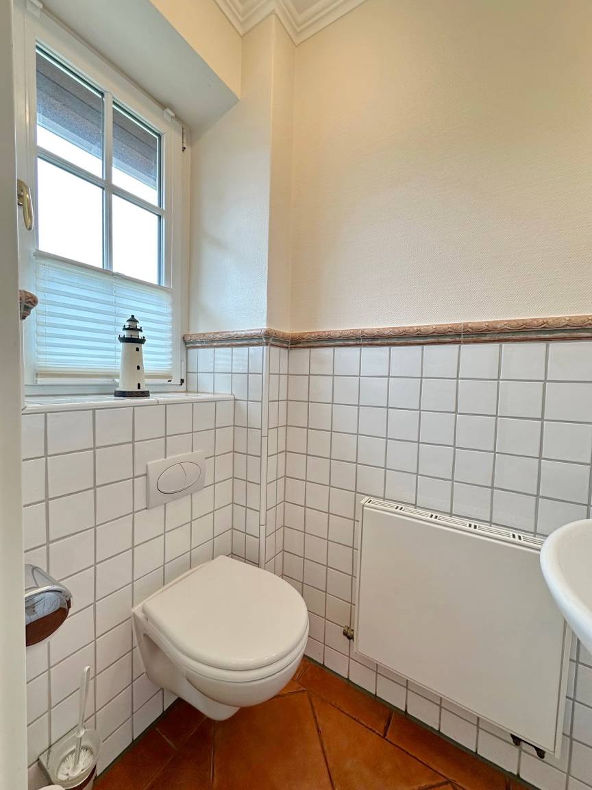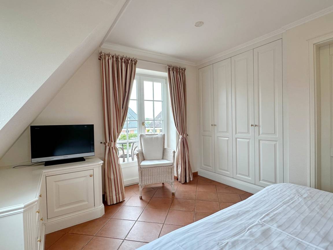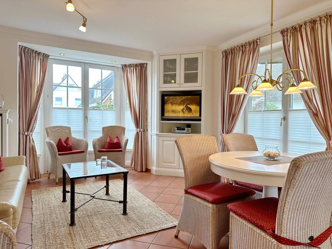 Das Endhauteil befindet sich in einer ruhigen Wohngegend im südlichen Teil von Westerland. Der Strand, die Nordsee und das Südwäldchen liegen in unmittelbarer Nähe und auch die Innenstadt von Westerland ist bequem zu Fuß erreichbar. Das Haus besteht aus einem Erdgeschoss, einem Obergeschoss und einem Dachgeschoss. Im Erdgeschoss befinden sich ein gemütliches Wohn- und Esszimmer mit einer Couchecke und einem Essplatz für 4 Personen, eine offene Küche, ein kleiner Flur und ein Gäste-WC. Die Küche ist mit einem Backofen, einer Mikrowelle, einem 4-Plattenkochfeld und einem Geschirrspüler ausgestattet. Auf der geschützten Südterrasse steht Mobiliar zur Verfügung und zwischen April und Oktober kann ein Strandkorb genutzt werden. Vom Wohnzimmer aus gelangt man ins Obergeschoss, wo sich das Schlafzimmer mit einem Doppelbett, Einbauschränken und einem weiteren Fernseher befindet. Außerdem gibt es hier einen sonnigen Westbalkon. Im Obergeschoss befindet sich auch das große Badezimmer mit Wanne, Dusche und WC. Im Dachgeschoss gibt es ein weiteres Schlafzimmer mit zwei Einzelbetten und Einbauschränken. Vor dem Haus gibt es einen Parkplatz und es ist gestattet, einen gut erzogenen Hund gegen eine Anmeldegebühr von 15€ pro Tag mitzubringen. Das Rauchen ist im Haus nicht gestattet. Bettwäsche und Handtücher sind zur Anreise aufgezogen.