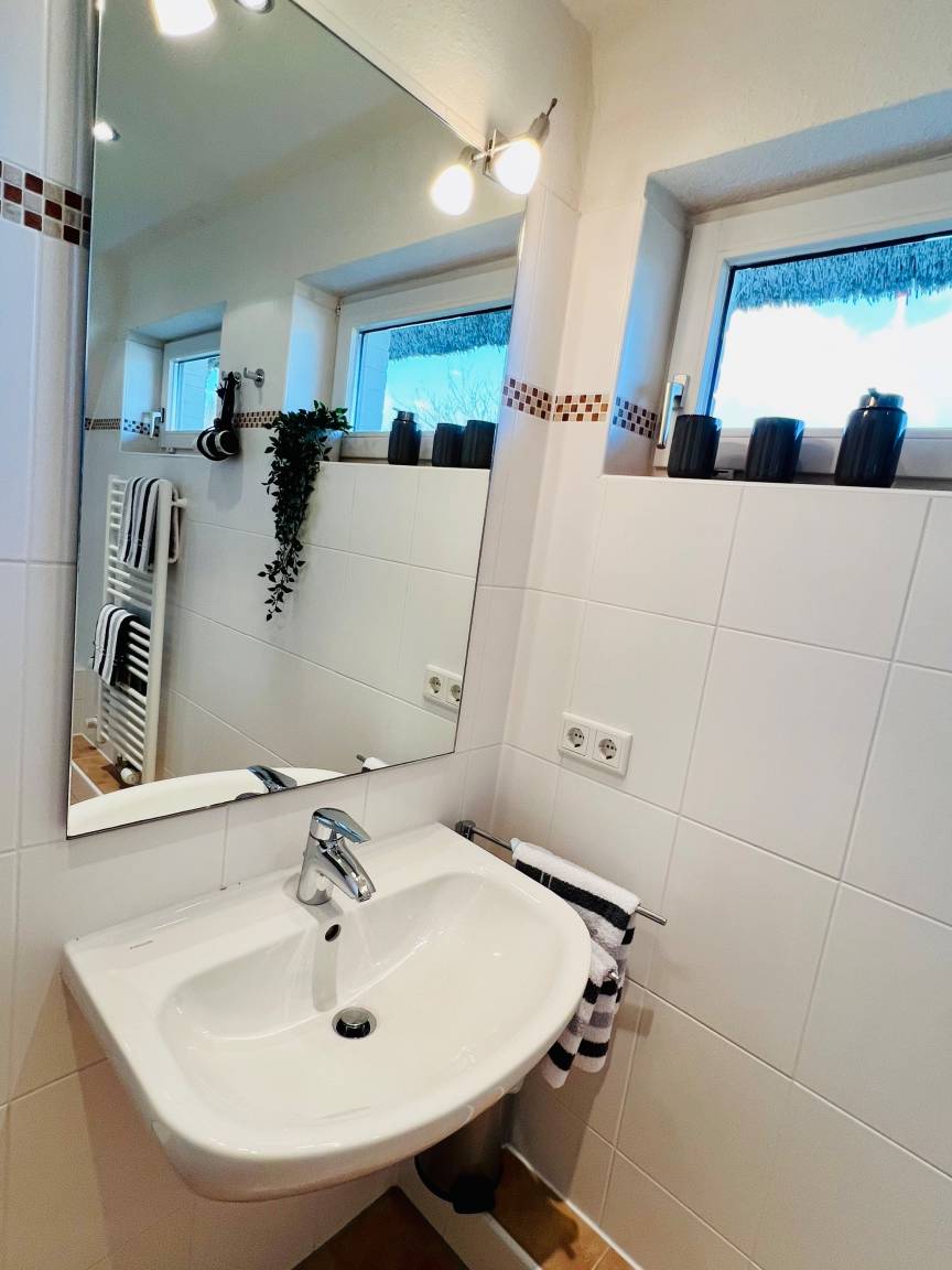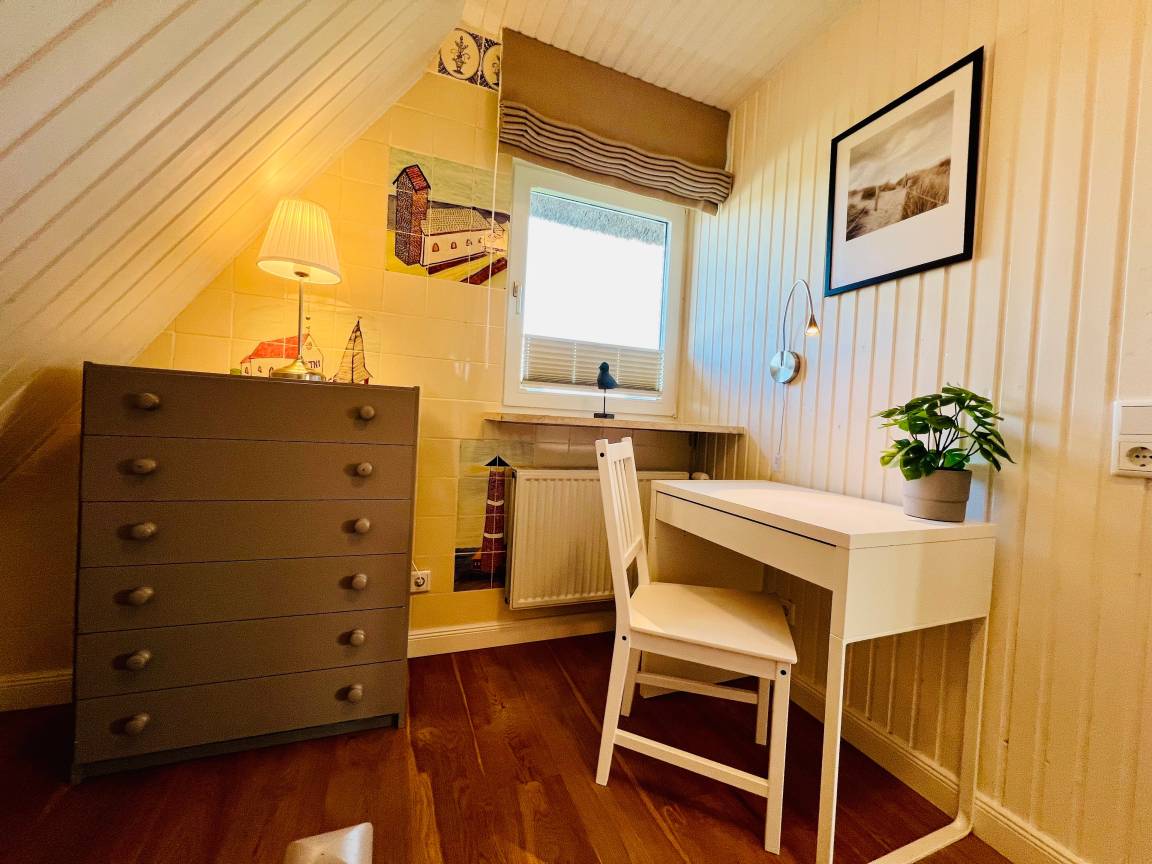 Ein besonderes Highlight ist der Außenbereich: Der große Garten bietet viel Raum zum Entspannen, Spielen und Durchatmen. Dazu kommen zwei Terrassen und ein bequemer Strandkorb, die zu ruhigen Stunden an der frischen Nordseeluft einladen.