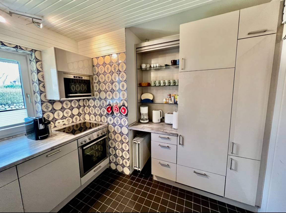 Im Haus stehen Ihnen vier gemütliche Schlafzimmer zur Verfügung – zwei mit Doppelbetten und zwei mit Einzelbetten. Zusätzlich bietet eine Schlafcouch weitere Flexibilität. Der großzügige Essbereich lädt zu gemeinsamen Mahlzeiten und geselligen Abenden ein, während die voll ausgestattete Küche alles bereithält, was Sie für einen entspannten Aufenthalt benötigen. Zwei moderne Badezimmer, eines mit Badewanne und eines mit Dusche, sorgen auch bei mehreren Gästen für angenehmen Komfort.