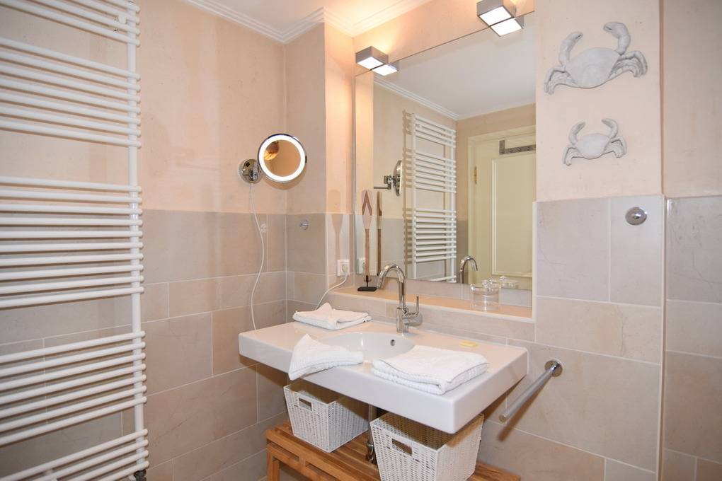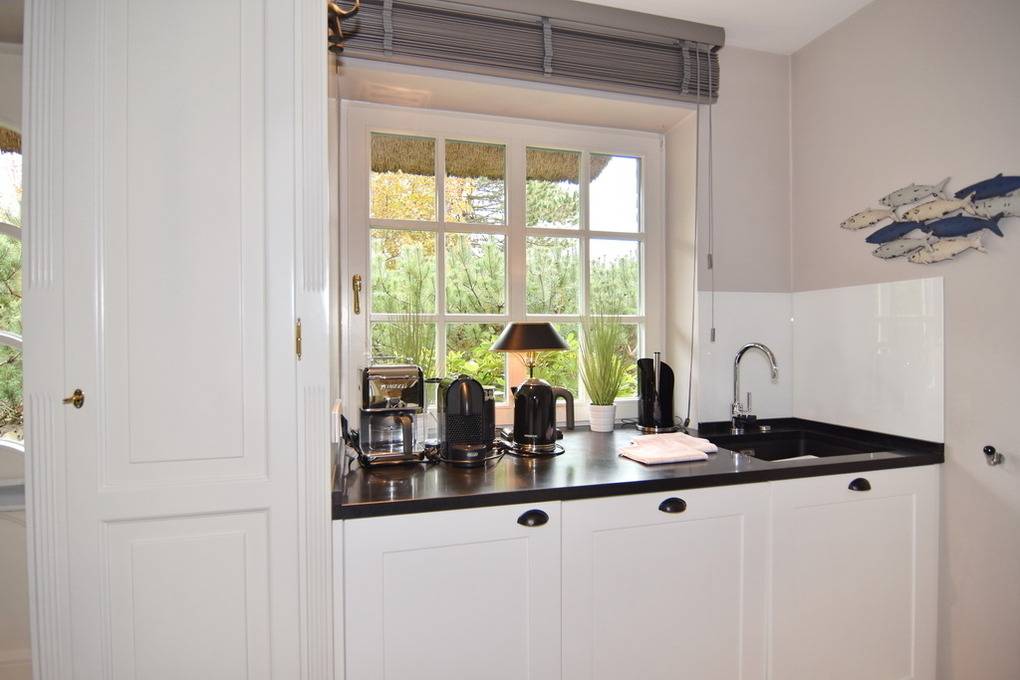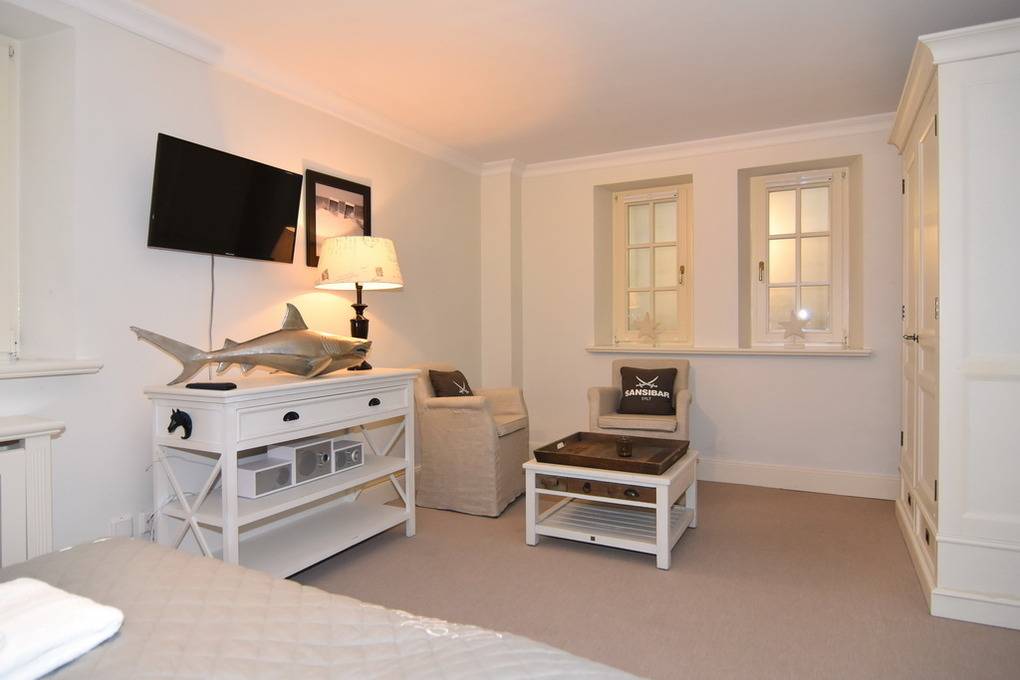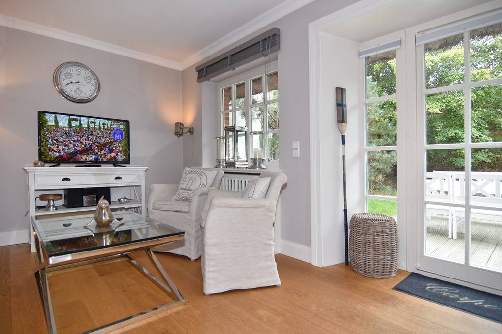 Das exklusive Apartment Oland bietet auf 77qm viel Platz und Komfort für insgesamt 3 Personen. Im Erdgeschoss lädt Sie ein großzügig geschnittener Wohnraum mit einem 65 Zoll-Bildschirm (Netflix tauglich mit eigenem Zugang), bequemer Sitz- und Essecke und eine offene Küche mit Geschirrspüler, Backofen, Nespressomaschine und den gängigen Koch- und Küchenutensilien ein. Im Souterrain befinden sich ein sehr geräumiges Schlafzimmer mit Doppelbett, kleiner Sitzgruppe, beleuchtetem Kleiderschrank und ein weiteres Schlafzimmer mit 1 Einzelbett und Kleiderschrank. Im Duschbad /WC mit Fenster und Föhn finden Sie hier eine kleine Abseite mit einem Waschtrockner. Im Flur des UG gibt es eine weitere Abseite, in der neben einem Bügelbrett und -eisen auch Ihre Koffer Platz finden. Sämtliche Räume sind hell und freundlich im Beach-House-Charakter und mit vielen Möbeln und Accesoires der Edelmarke Riviera Maison eingerichtet. Zur Wohnung gehört eine möblierte Westterrasse mt Strandkorb. Unmittelbar neben dem Apartment befindet sich Ihr Pkw-Außenstellplatz Nr. 6. Bettwäsche und Handtücher sind zur Anreise aufgezogen. Rauchen und Grillen ist aufgrund des Reetdaches nicht gestattet. Ihren Hund dürfen Sie gerne auf Anfrage mitbringen.