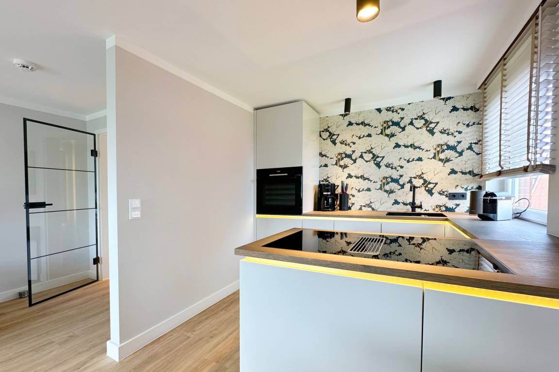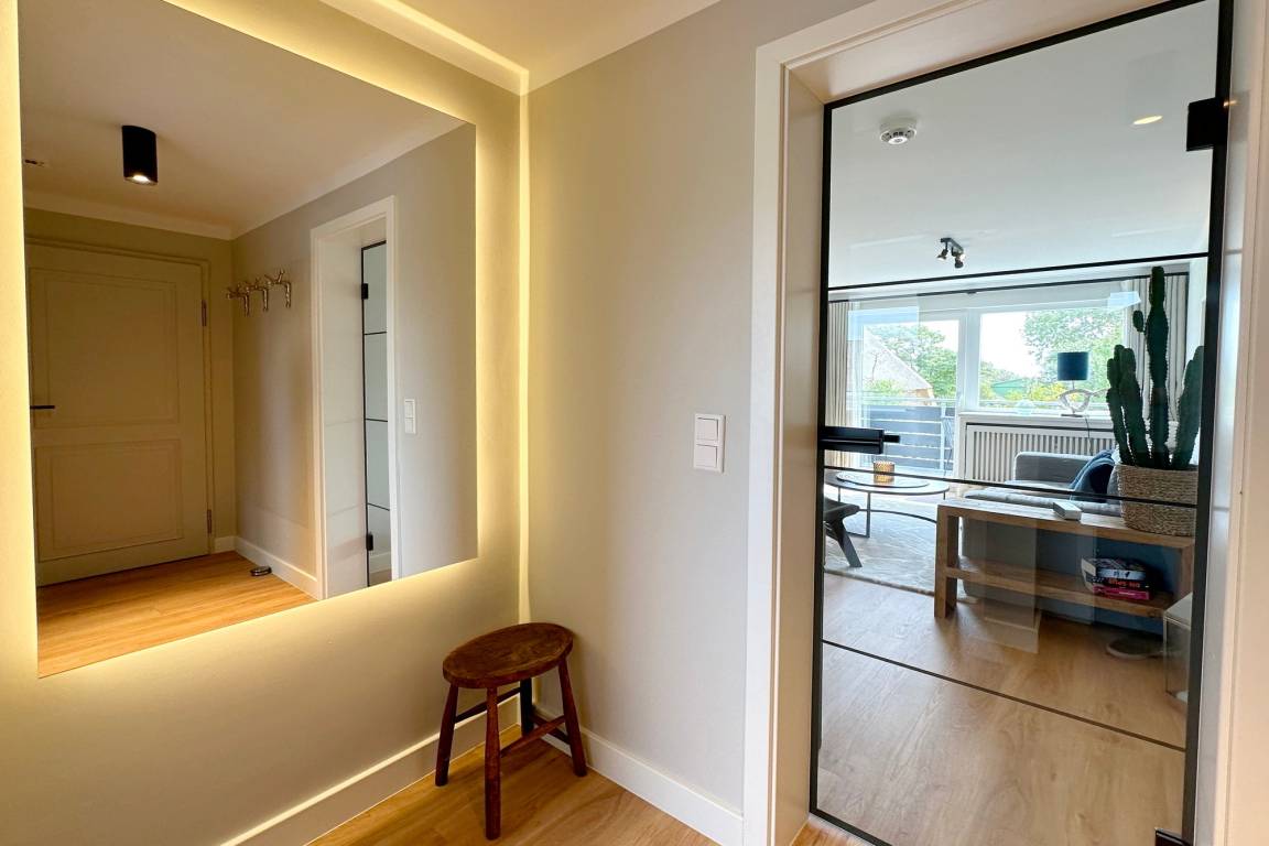Die Wohnung ist liebevoll eingerichtet und befindet sich in einer guten Lage in Westerland. Besonders hervorzuheben sind die raffinierten Tischlereinbauten, die der Wohnung ein modernes und dennoch gemütliches Ambiente verleihen. Hier können Sie sich schnell zuhause fühlen. Die offene Küche ist gut ausgestattet und bietet auch für Hobbyköche alles, was sie brauchen. Im liebevoll gestalteten Bad bleiben keine Wünsche offen. Auf dem nach Süden ausgerichteten Balkon können Sie sich entspannen und die Sonne genießen.