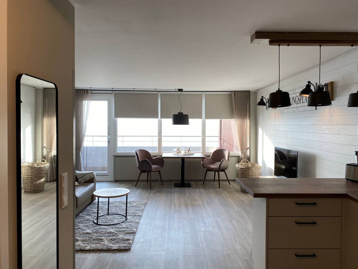 „Die Wohnung ist sehr schön eingerichtet, alles aufeinander abgestimmt und sehr modern. Das Schlafsofa, die integrierte Küche und das Badezimmer - alles top! Sehr gut sind auch die vielen Schränke - alles sehr gut durchdacht. Und dann natürlich der tolle Ausblick aufs Meer. Wir haben uns sehr wohl gefühlt. Danke!“