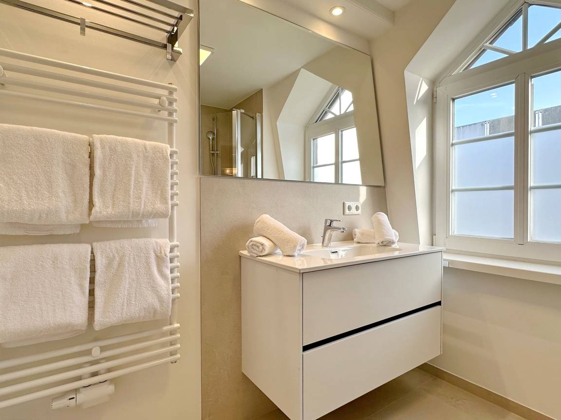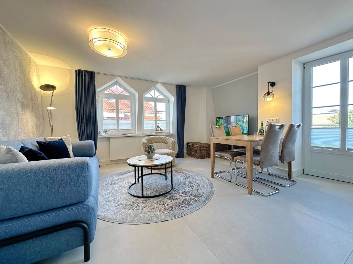 Die Wohnanlage "Olympia" bietet eine zentrale Lage in kurzer Entfernung zur Promenade, dem Badestrand und dem Meer. Auch die Fußgängerzone ist nur wenige Gehminuten entfernt. Die 2-Zimmer-Wohnung liegt im 2. Obergeschoss, wurde im Jahr 2025 von Grund auf renoviert und ist für 2 Personen ideal geeignet. Sie hat eine Größe von ca. 43 m² und besteht aus einem Wohn- und Esszimmer mit Couchecke, Essplatz und integrierter Küche. Die Küche ist mit einem Induktionskochfeld, einem Geschirrspüler und einer Mikrowelle mit Grillfunktion ausgestattet. Vom Wohnzimmer aus gelangt man auf den sonnigen und möblierten Westbalkon. Im Schlafzimmer befindet sich ein Box-Spring-Doppelbett, Einbauschränke und ein weiterer Flat-TV. Das moderne Duschbad verfügt über ein Fenster. Im Dielenbereich befinden sich Einbauschränke und eine Garderobe für Jacken und andere Dinge. WLAN steht zur Verfügung, jedoch ohne Gewähr. Das Mitbringen von Haustieren und das Rauchen sind nicht gestattet. Bei Anreise sind Bettwäsche und Handtücher bereits aufgezogen. Die Wohnanlage verfügt über einen Schwimmbad- und Saunabereich sowie einen zusätzlichen Wellnessbereich mit finnischer Sauna, Dampfsauna und Ruhebereich. Fahrzeuge können gegen Gebühr und vorheriger Anmeldung in der Tiefgarage abgestellt werden. Eine Waschmaschine und ein Trockner stehen kostenfrei zur Verfügung. Für Fahrräder gibt es einen Abstellbereich in der Garage.