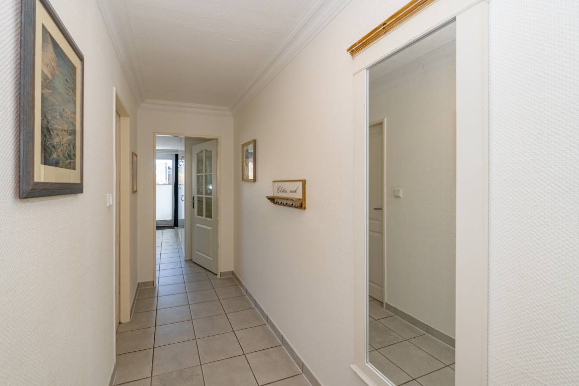 Vom Vorflur mit Garderobe gelangt man in das Wohnzimmer (mit Austritt zum Balkon), in das Schlafzimmer und in das neue Duschbad/WC.