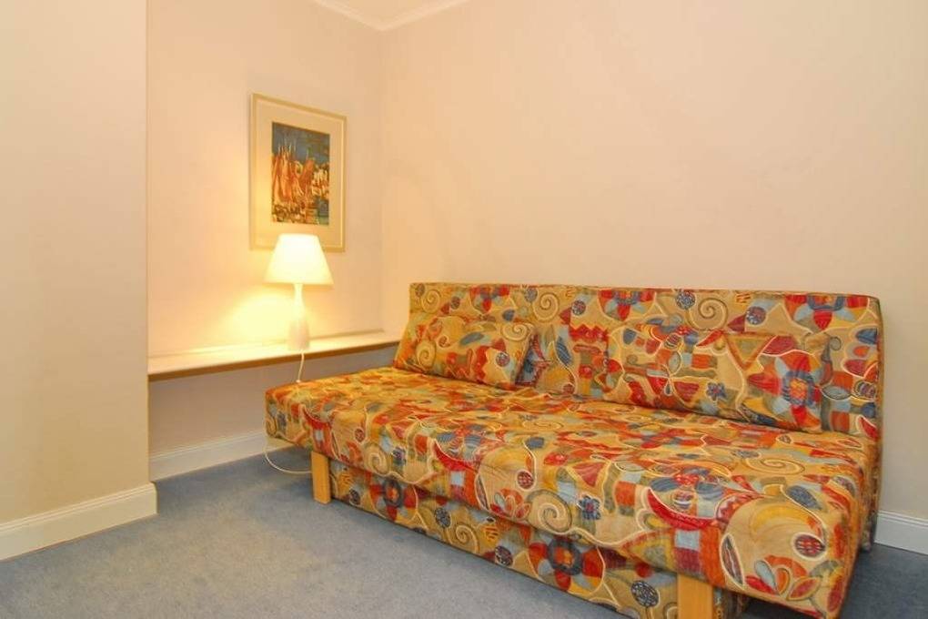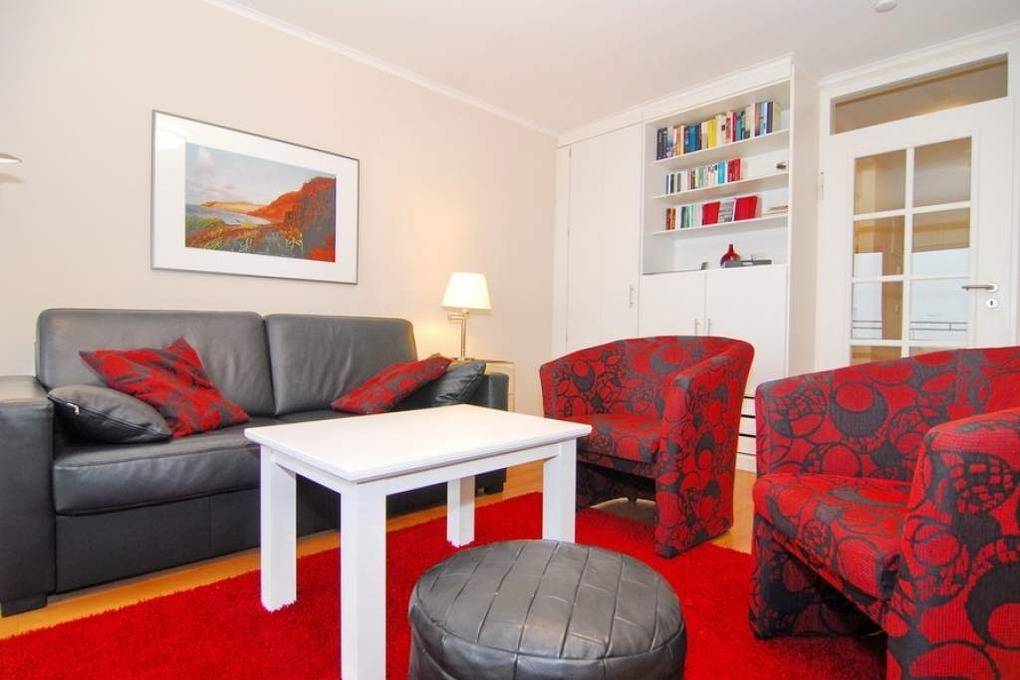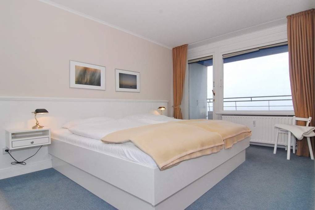 2,5 Zimmer-Ferienwohnung, ca. 68m², 6. OG, zur Seeseite im Haus Sylter Welle. Nichtraucher-Whg.! Wohnzimmer mit Dekorboden, Sitzecke mit Schlafcouch, Essplatz, Flat-TV, W-LAN (ohne Gewähr), Telefon (Festnetzflatrate), Westbalkon mit freier Sicht auf Strand und Meer, separates Schlafzimmer mit Doppelbett (2x2m), Einbauschrank und Westbalkon. Vom Schlafzimmer aus geht es in ein weiteres innenliegendes Zimmer mit Schlafcouch. Modernes Duschbad/WC, separate Küche mit Geschirrspüler und Mikrowelle. PKW-Stellplatz/Garage kann kostenpflichtig gebucht werden. Bettwäsche und Handtücher sind zur Anreise aufgezogen. Tierhaltung ist nicht gestattet!