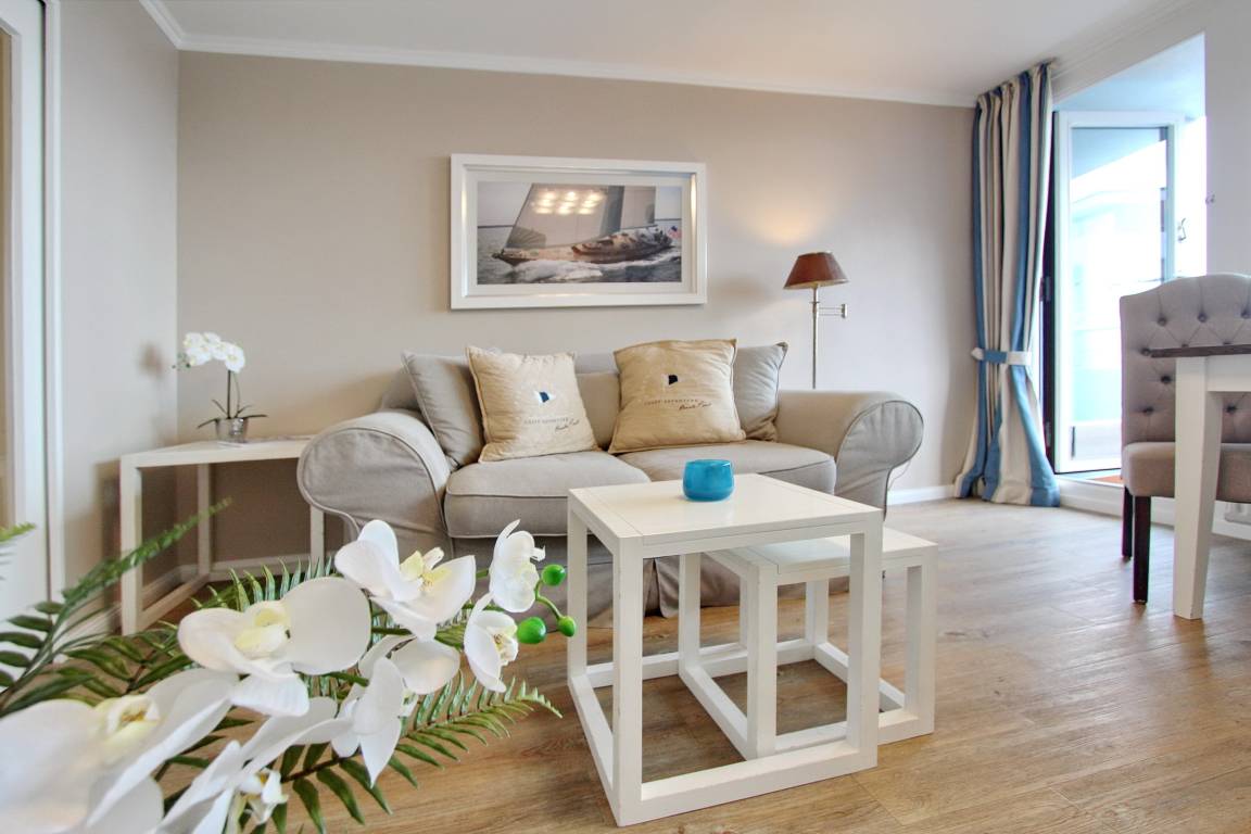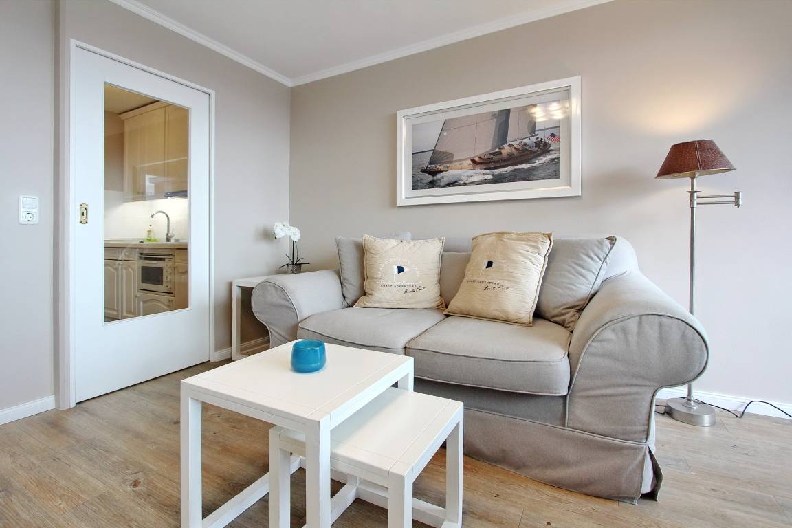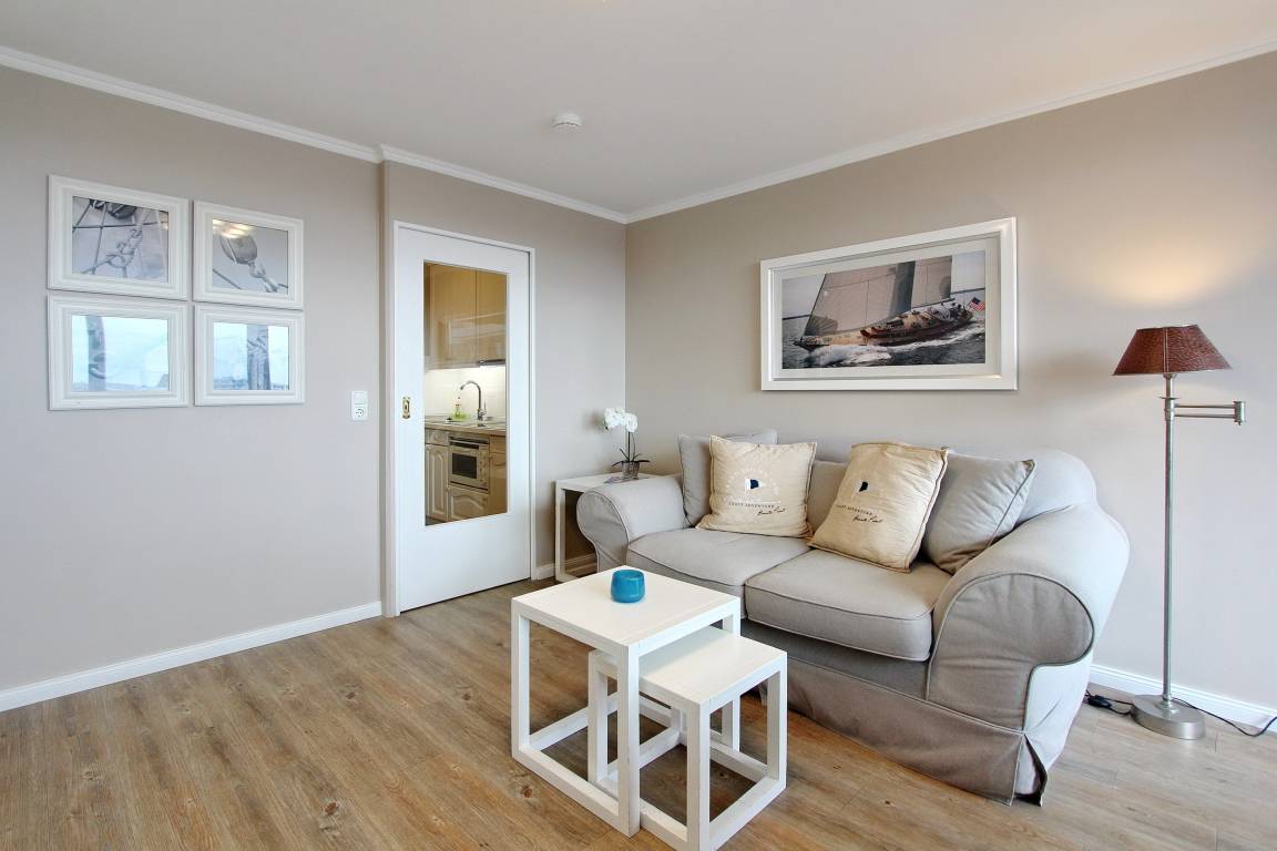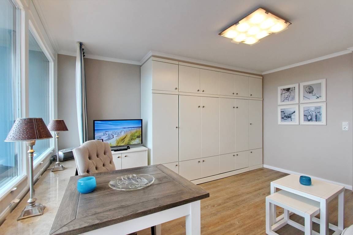 Hell und freundlich eingerichtetes Appartement im Haus Metropol in der 6. Etage, nur wenige Gehminuten vom Strand und Meer entfernt. Der kombinierte Wohn-/Schlafraum mit vorgelagertem Ostbalkon mit Balkonmöbeln ist neu und modern möbliert und hat ein sehr stimmiges Einrichtungskonzept. Die Wohnung hat einen Designfussboden in Holzoptik, ein große Couch, ein Doppelschrankbett (2 Matratzen) und einen Essplatz mit 2 bequemen Polsterstühlen am Fenster. Das helle Badezimmer hat eine Badewanne. Ein Haltegriff ermöglicht sicheres Ein- und Aussteigen. Um sich selbst zu verpflegen gibt es im Flur eine Küchenzeile mit Ceranfeld und eine Mikrowelle. Zur technischen Ausstattung gehört ein Flachbildfernseher und eine Stereoanlage. Das freie WLAN Netzwerk (WEG Haus Metropol - Passwortfrei - ohne Gewähr) können sie kostenfrei nutzen. Die Größe dieser Nichtraucherwohnung ist ca. 30 m².