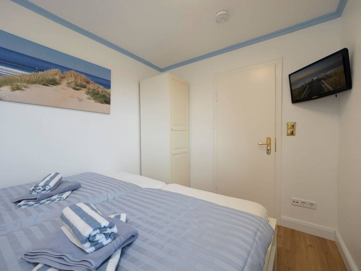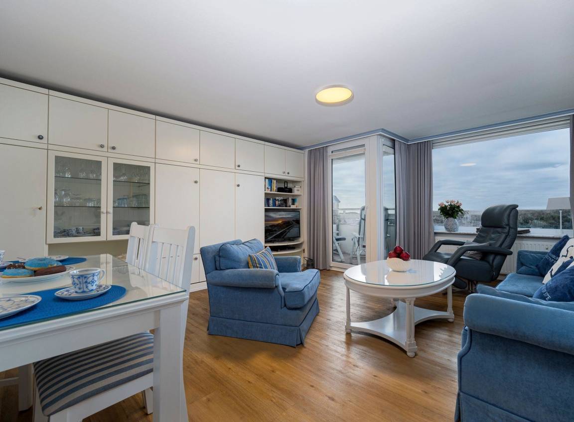 Die gemütliche eingerichtete 2-Zimmer-Nichtraucher-Ferienwohnung bietet eine perfekte Mischung aus Komfort und Erholung. Das Appartement ist ca 44 qm gross und befindet sich in der 3. Etage zur Westseite für max. 4 Personen. Auf dem Westbalkon mit Balkonmöbeln können Sie die Nachmittagssonne und den herrlichen Dünnenblick und Meerblick genießen.