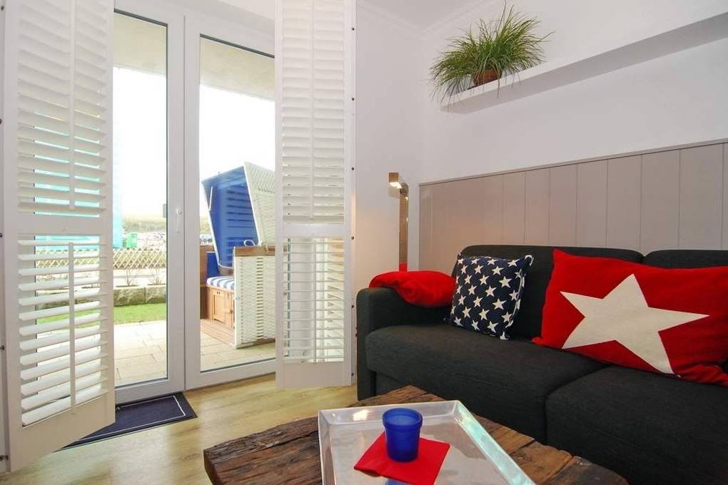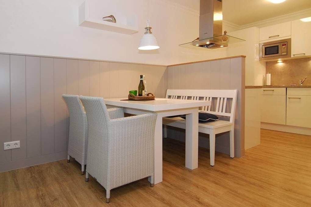 Exklusive 2-Zimmer-Ferienwohnung, EG, ca. 55 m², "Nichtraucher", für 2 Erwaschene und 1 Kind![nbsp][nbsp]Wohnzimmer mit Schlafcouch, Esstisch mit Bank und 2 Stühlen, Flat-TV, Stereoanlage, offene Küche m. Geschirrspüler, Mikrowelle und Backofen, Schlafzimmer mit Doppelbett ( 180x200 ), Einbauschrank und Flat-TV, Westterrasse und kleiner Grünstreifen, Duschbad / WC, Flur mit Garderobe. Fußboden mit Design Belag.Tierhaltung ist nicht gestattet. Garagen-Parkbox Nr. 2 ( nicht für jeden PKW geeignet, max. Höhe 1,50m, max. Gewicht 2t, Länge 5 m, Breite 1,9m, vor Nutzung muss die Bedienanleitung gelesen werden. Anleitung befindet sich vor Ort!). Bettwäsche und Handtücher sind zur Anreise aufgezogen. Die Waschküche befindet sich im Keller Eingang 5a.
