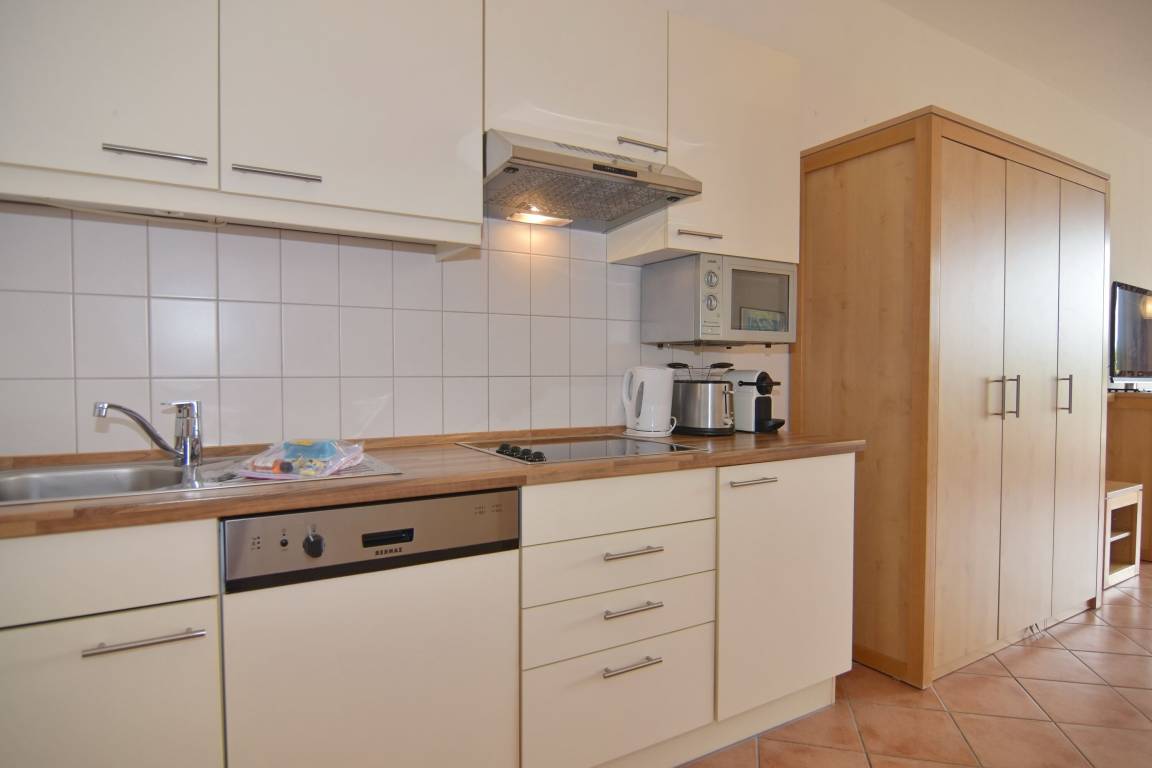 1-Zimmer-Ferienwohnung im roten Haus der Residenz Mauritius, Nichtraucher-Whg., ca. 36 m², 1. OG. Wohn-/Schlafraum mit Südbalkon, Doppelbett, Essplatz, 2-Sitzer-Couch (ausziehbar/als Doppelliege nutzbar) und Sessel, Kabel-TV, Küchenzeile mit Geschirrspüler und Mikrowelle, Nespressomaschine, Duschbad/WC. Das Apartment ist komplett gefliest. Internetanschluß (ohne Gewähr). Waschküche und Fahrradkeller im Nebenhaus "Mauriitus". Pkw-Stellplatz kann kostenpflichtig hinzugebucht werden. Bettwäsche und Handtücher sind zur Anreise aufgezogen! Tierhaltung ist gestattet und muss angemeldet werden.
