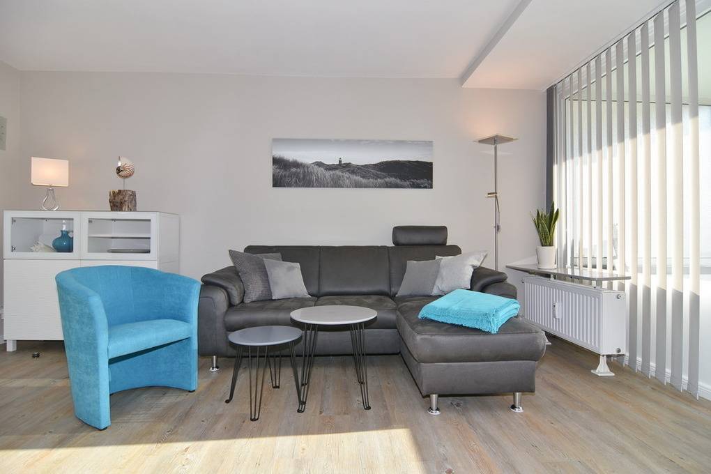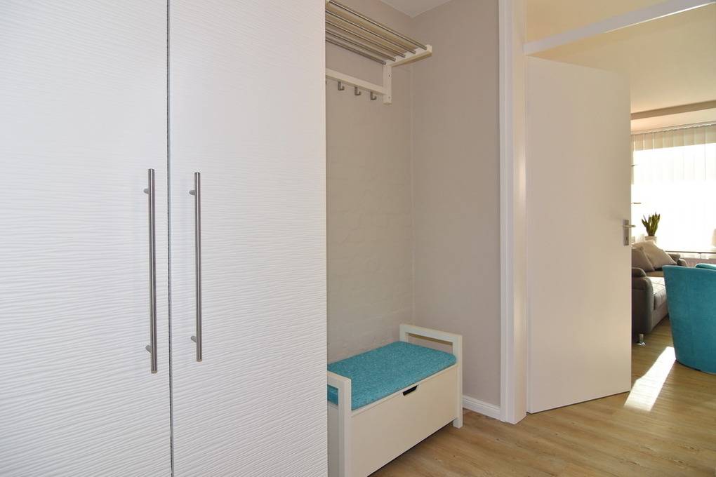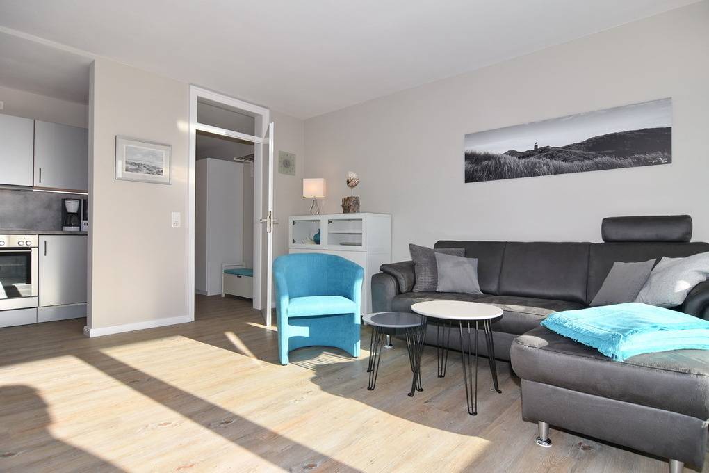 In unmittelbarer Strandnähe bieten wir Ihnen diese 2-Zimmer-Ferienwohnung für 2 Personen im Haus Käptn Christiansen. Die Wohnung überzeugt nicht nur durch Ihre super Lage und den geschützten Balkon, sondern auch durch eine moderne Ausstattung. Vom großzügigen Eingangsbereich mit Einbauschränken und Garderobe gelangen Sie in ein modernes Duschbad mit Handbrause, Regendusche und Sitzplatz in der Dusche. Der Wohnbereich hat eine moderne Sitzecke mit Eckcouch und Sessel und einen großzügigen Essplatz. WLAN (ohne Gewähr) vorhanden. Die offene Küche bietet neben dem Ceranherd einen Backofen und Geschirrspüler. Die Küche ist vollständig ausgestattet. Vom Wohnraum aus gelangen Sie auf den großzügigen Südbalkon. Hier lässt es sich wunderbar aushalten - selbst bei starkem Westwind sitzen Sie hier geschützt. Das Schlafzimmer verfügt über ein Boxspringbett (160x200) und Flat-TV. Rauchen und Tierhaltung ist in dieser Wohnung nicht erlaubt. Bettwäsche und Handtücher sind zur Anreise aufgezogen. Parken ist auf dem Grundstück gestattet - hier haben Sie freie Platzwahl. Fahrradkeller und Waschkeller (mit Münzautomaten) vorhanden.