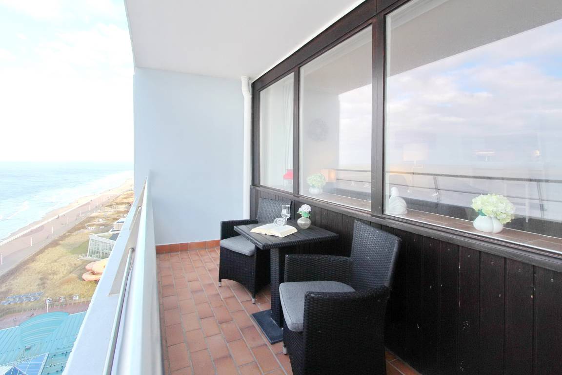 Diese Einzimmerwohnung in der 13. Etage des Haus Metropol hat einen herrlichen Blick auf den Strand und die Nordsee. Der kombinierte Wohn-/Schlafraum mit vorgelagertem Westbalkon (inkl. Balkonmöbeln und Auflagen) verfügt über ein Etagenbett, Designfussboden und eine bequeme Couchgarnitur mit Schlaffunktion und Sessel. In der Küche mit Backofen, Ceranfeld mit 4 Herdplatten und Esstresen können Sie sich selbst verpflegen. Das Badezimmer hat eine Dusche mit Duschvorhang. Zur technischen Ausstattung dieser Nichtraucherwohnung gehört: ein Flachbildfernseher und ein Radio. Ein freies WLAN Netzwerk (WEG Haus Metropol - Passwortfrei - ohne Gewähr) steht ihnen kostenfrei zur Verfügung. Wohnungsgröße: ca. 42 m².