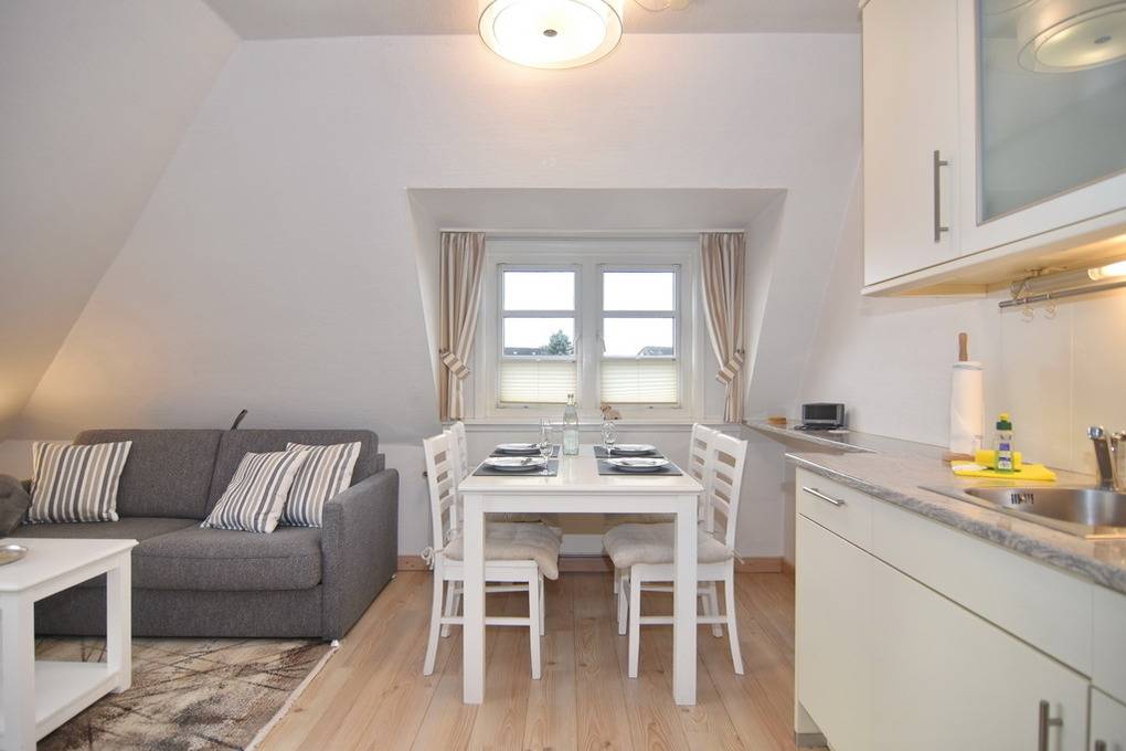 Sonniges 2-Zimmer-Apartment im Haus "Sinfonie" im 1. OG mit geschütztem Südbalkon. Ca. 45 m², Nichtraucher. Wohnzimmer mit Doppelschlafcouch (150x190), Essecke und offener Küche mit Geschirrspüler und Mikrowelle, Schlafzimmer mit Doppelbett (2x80x200), Bad mit Dusche. Kostenlose Nutzung des Schwimmbades und der Sauna. Waschmaschine und Trockner über Münzautomaten. Bettwäsche und Handtücher sind zur Anreise aufgezogen! Tierhaltung ist gestattet, bitte anmelden (keine Kampfhunde).