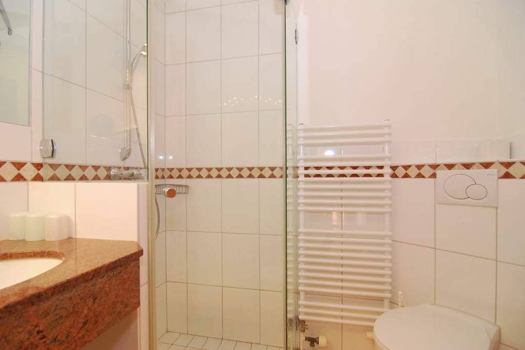Hübsche 2-Zimmer-Ferienwohnung im Haus "Olympia III" im 1. OG mit sonnigem Südostbalkon. Ca. 50m². Nichtraucherwohnung. Wohnzimmer mit hübscher Küche mit Geschirrspüler und Backofen, Doppelschlafcouch und Essplatz für 4 Personen, Duschbad/WC, Schlafzimmer mit Doppelbett (2x80x200 - passt kein Kinderbett rein), Flur mit Garderobe, Kabel-TV und Radio. Unter Haus 4 befindet sich das Schwimmbad mit Finnischer Sauna. Unter Haus 2 befindet sich ein separater Wellnessbereich mit Dampfsauna, Finnischer Sauna und Ruhebereich. Eine Waschküche mit Gemeinschaftswaschmaschine/Trockner ist vorhanden. Offenes W-LAN-Netzwerk steht zur Verfügung (ohne Gewähr). Bettwäsche und Handtücher sind zur Anreise aufgezogen. Ein Garagenstellplatz kann kostenpflichtig gebucht werden!