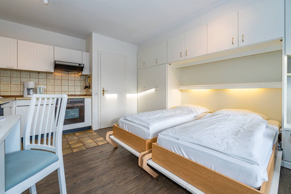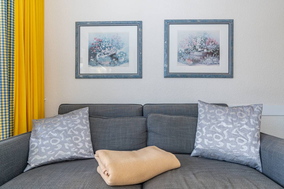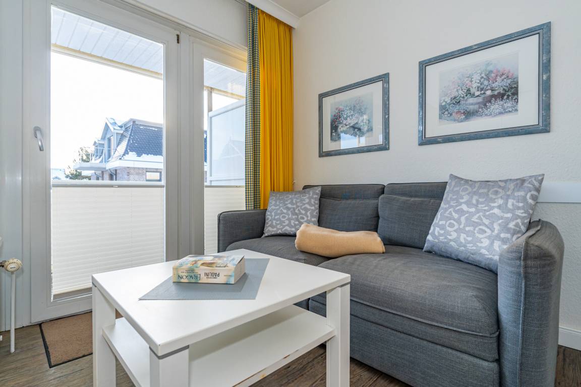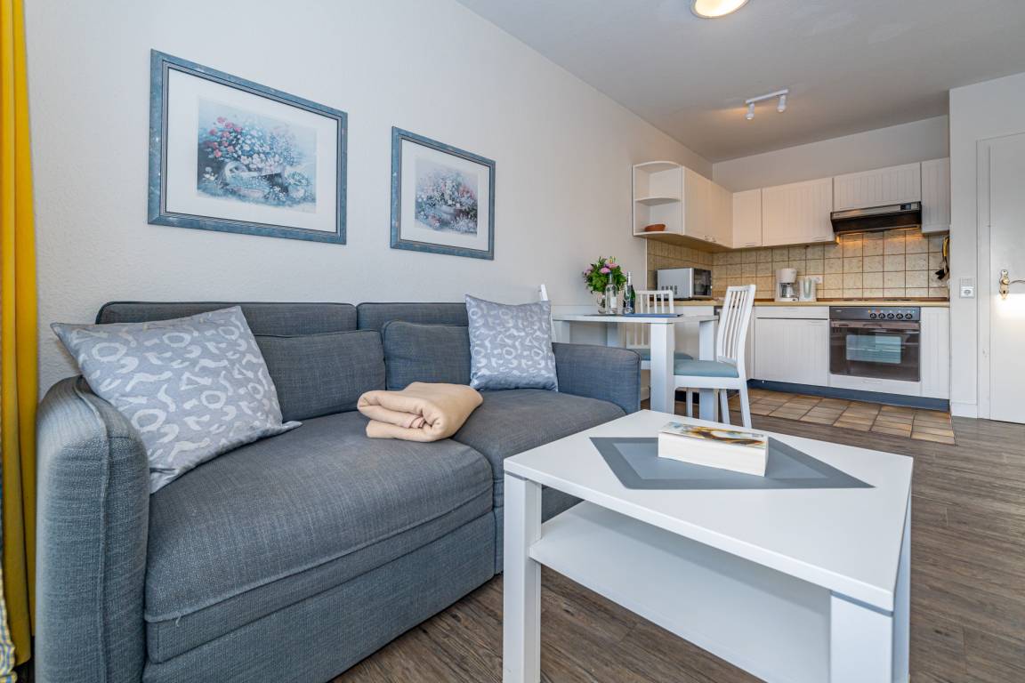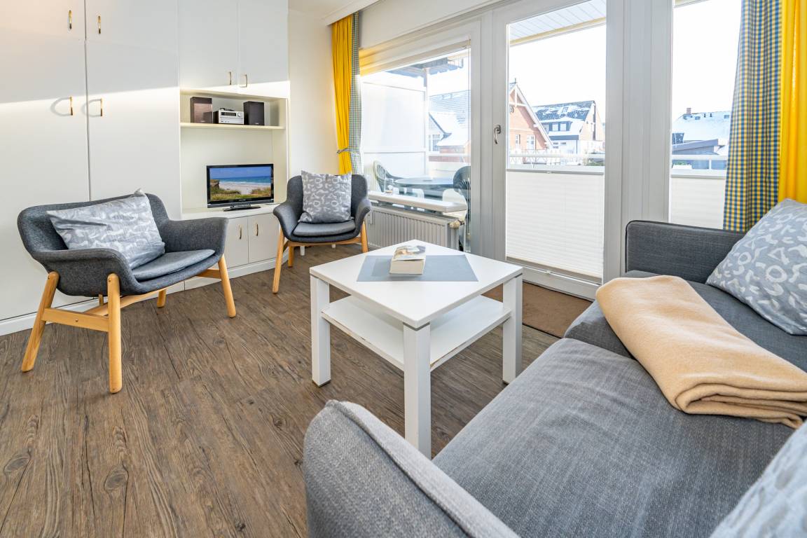 2-Zimmer-Nichtraucher-Ferienwohnung ca. 48 qm in der 1. Etage zur Südseite mit Südbalkon (mit Balkonmöbeln und Auflagen) für max. 4 Personen.