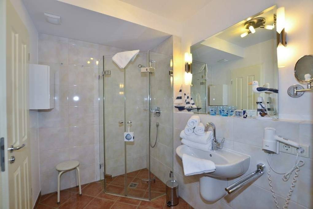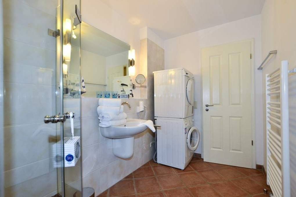 Das 2. Schlafzimmer hat ein Doppelbett (mit zwei Einzelmatratzen 0,90 x 2,00 m) und ein Duschbad/WC mit Waschmaschine und Trockner.